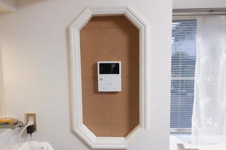 インタフォン交換に伴い、飾り壁に穴が見えてしまいましたが、きれいにお直しがかないました。