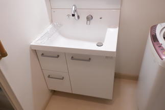 洗面化粧台はひろびろとしたボウルとくるくる動く水栓が特長の【ピアラ】。