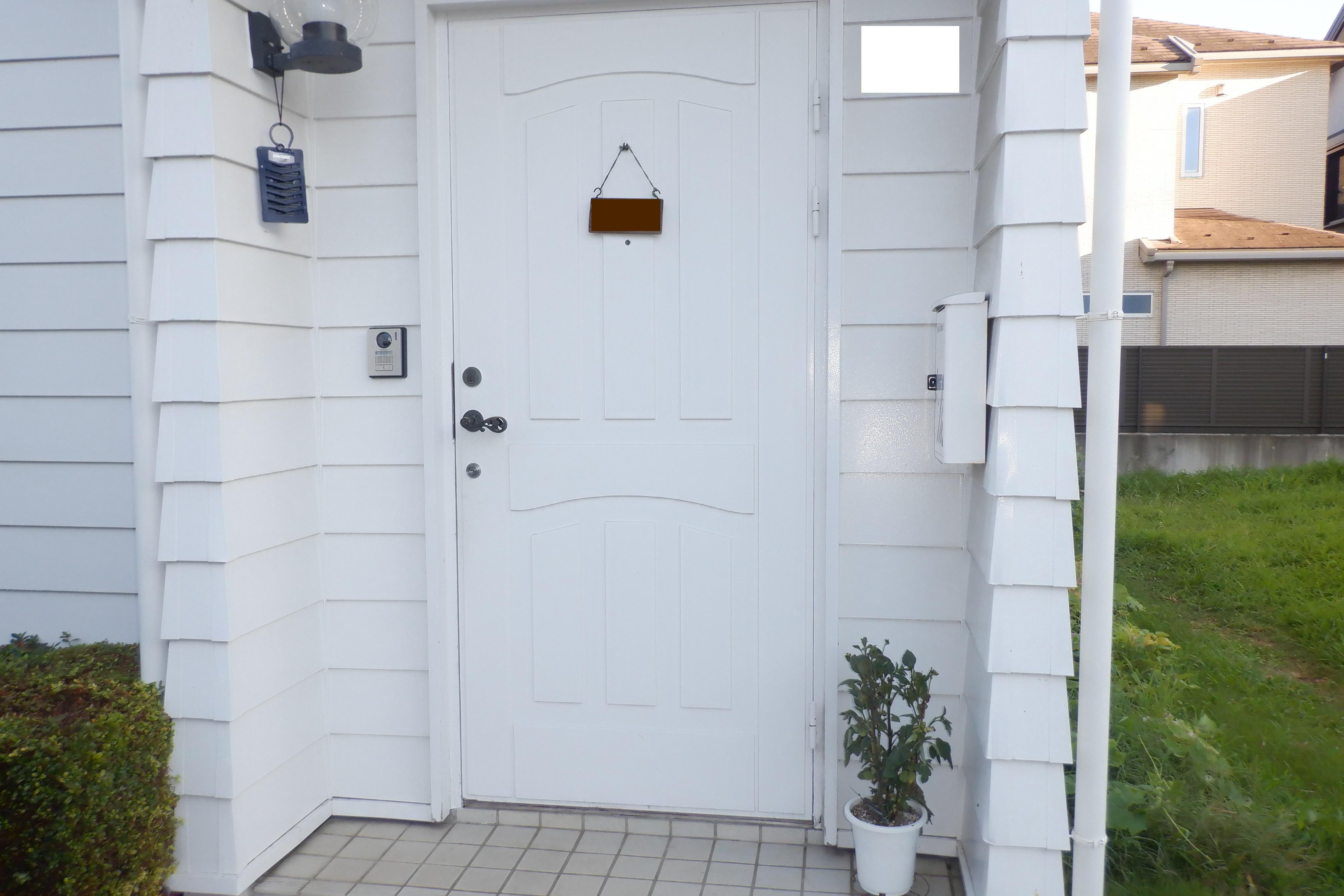 玄関ドアは【LIXIL・リシェント】。デザインの美しさだけでなく断熱や防犯にも優れています。