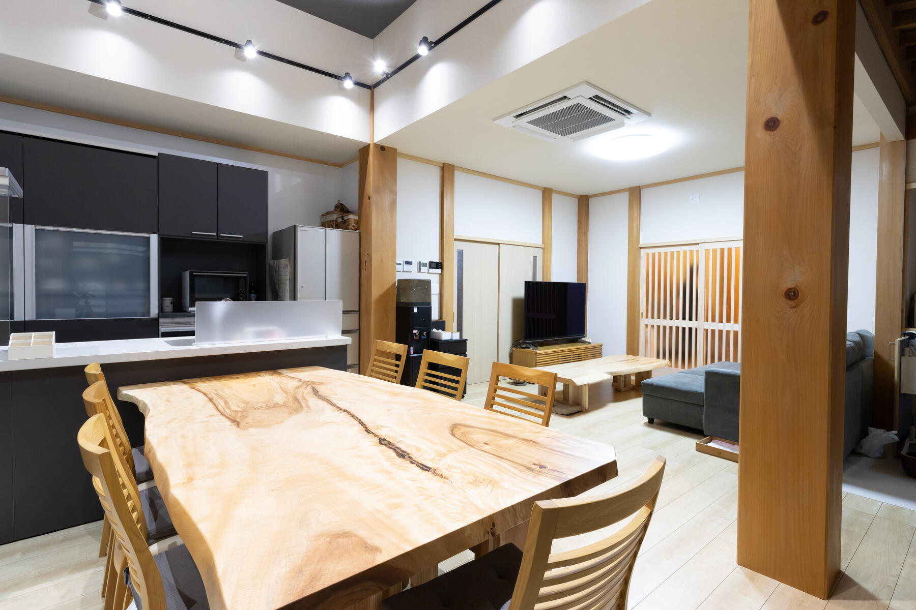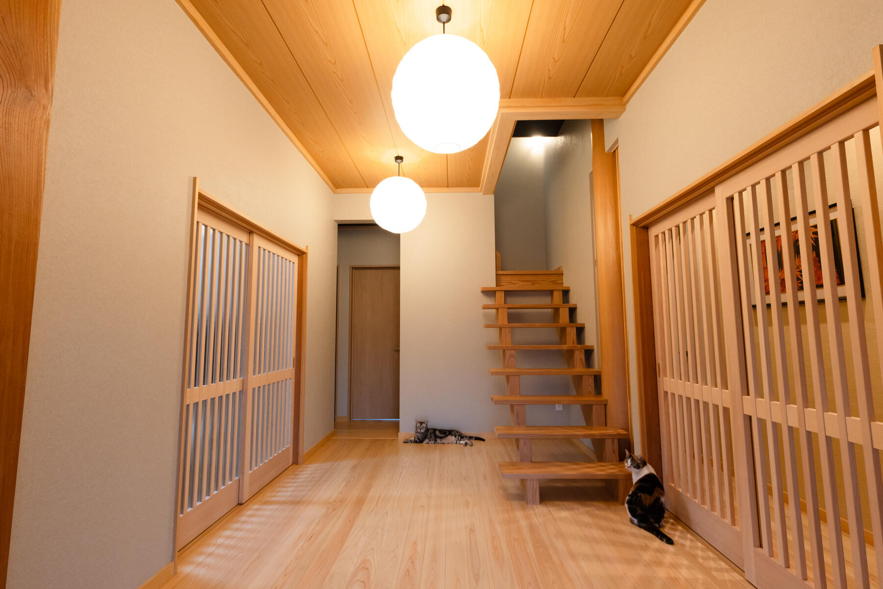 以前あった建物の梁や柱を活かして、リノベーション。 たくさんの猫に囲まれた、あたたかいご自宅になりました。