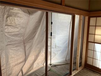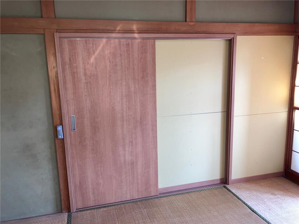 引っ掛かり、開閉がしづらくなっていたふすまを片引戸に交換しました。