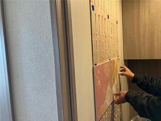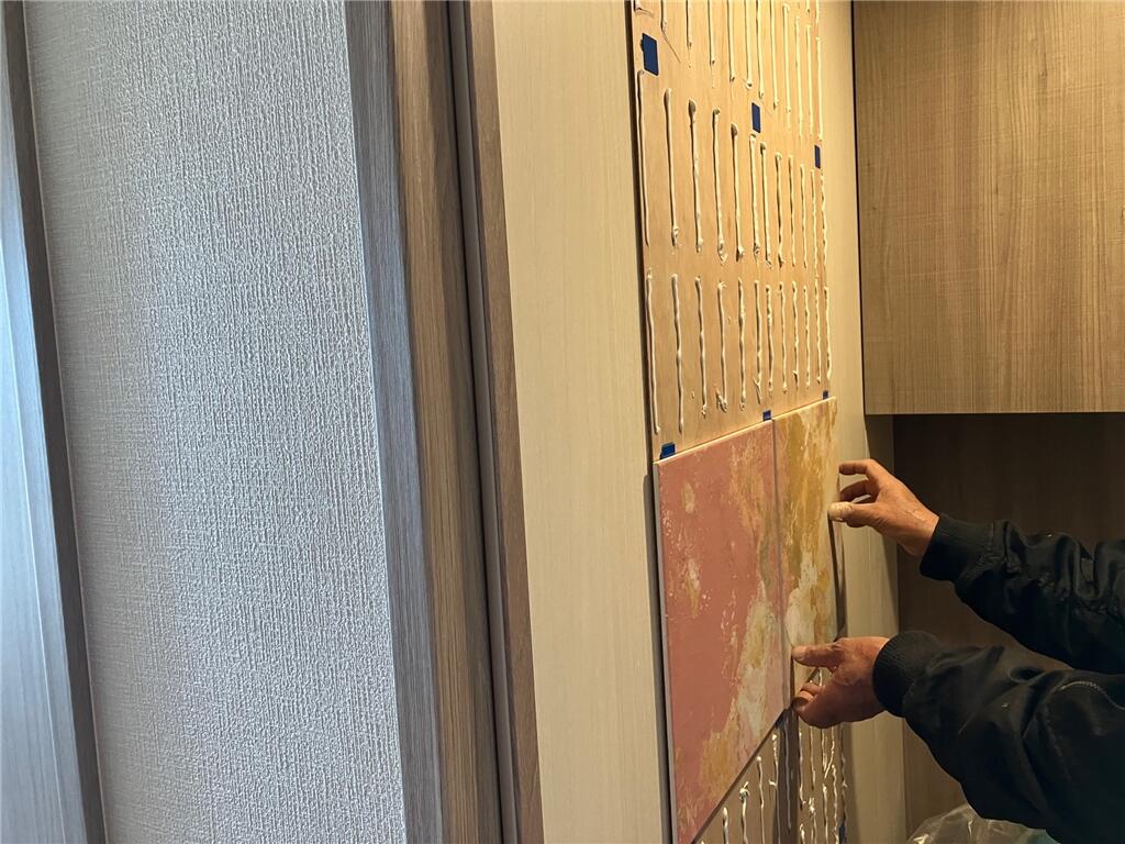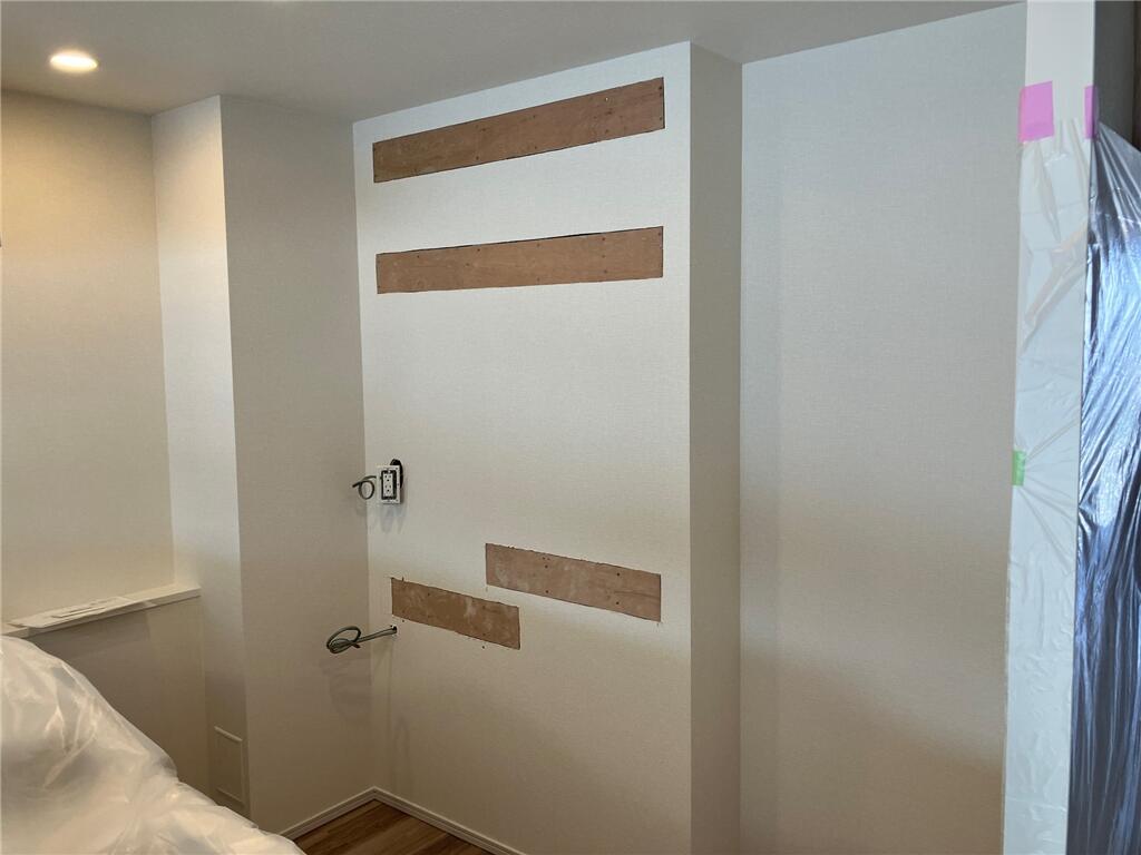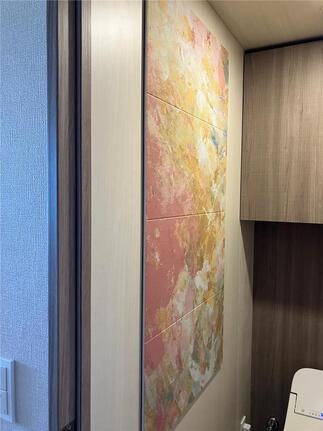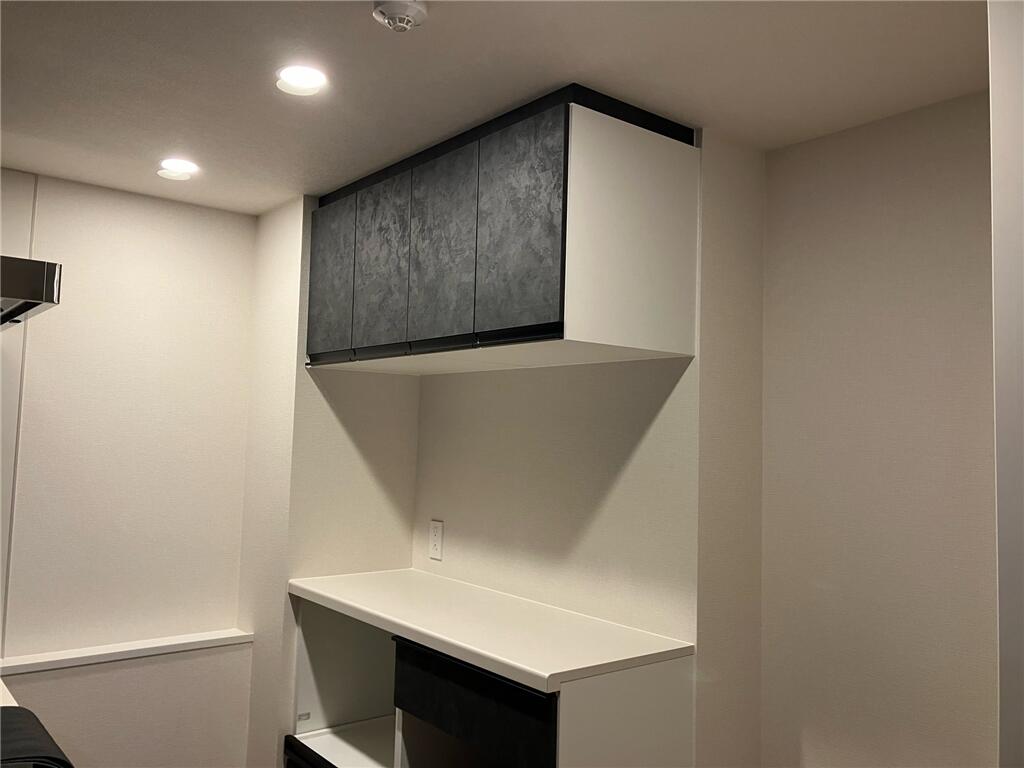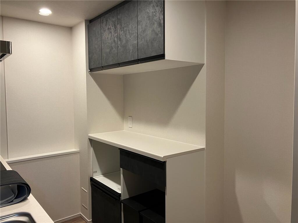 新築マンションにお住まい前にカップボードを新設したい。とのご希望で工事をさせていただきました。 ホスクリーンも取付け、トイレにはデザイン性の高いエコカラットを貼りました。