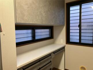 以前洗面台の工事をさせていただいたご縁で、 今回はキッチン交換工事と外灯の交換工事をさせていただきました。 キッチンはLIXILの【リシェル】。 カップボードも新しく設置し、使い勝手がよくなりました