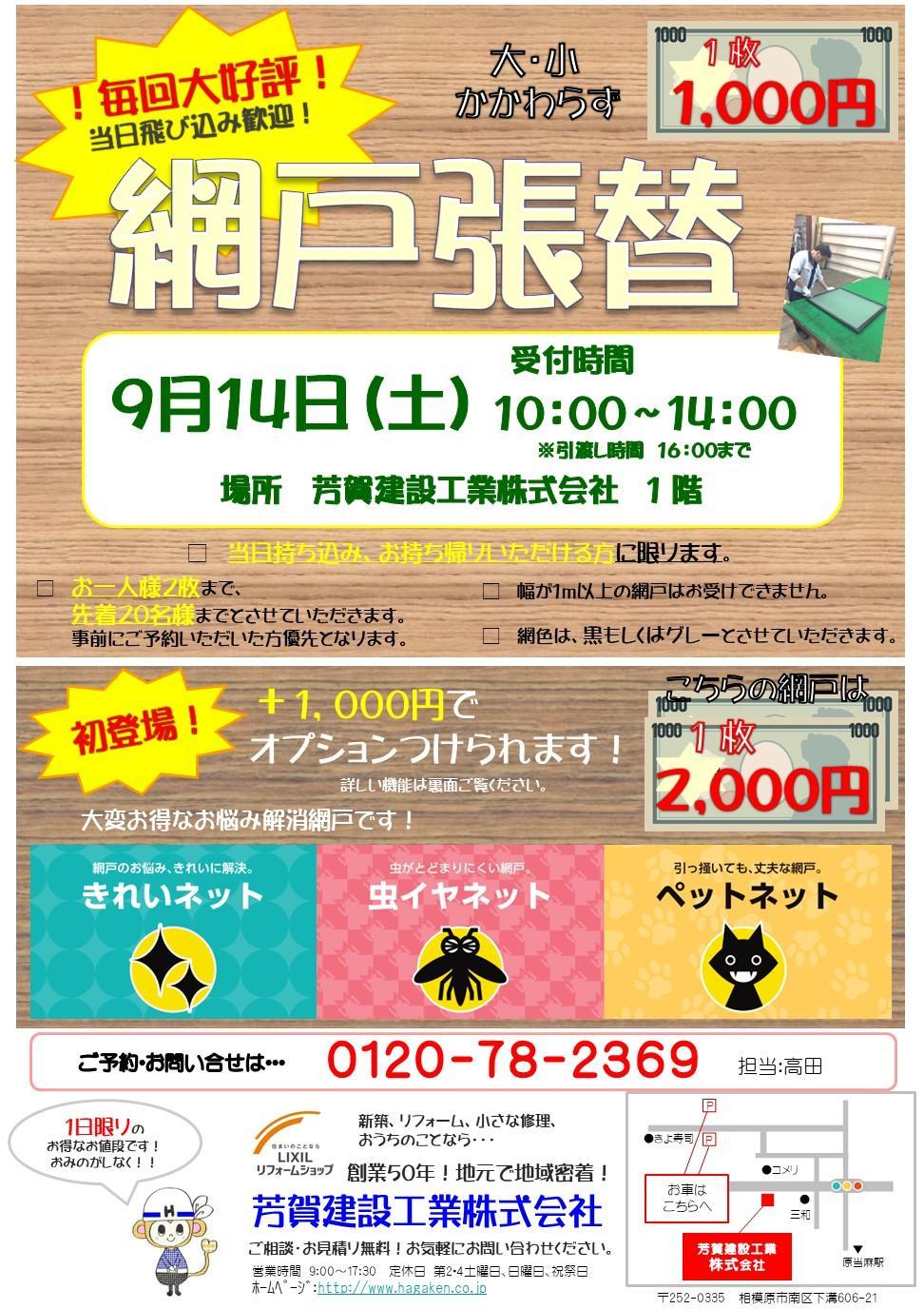 9月14日(土)10:00~14:00(※引渡し時間16:00まで)