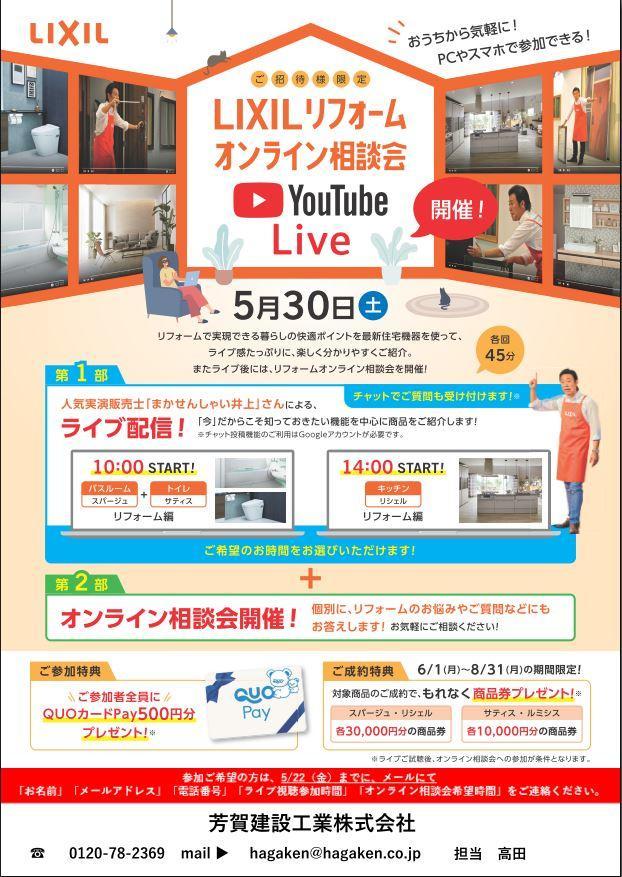 YouTubeによるライブ配信と、オンラインでの個別相談会です。