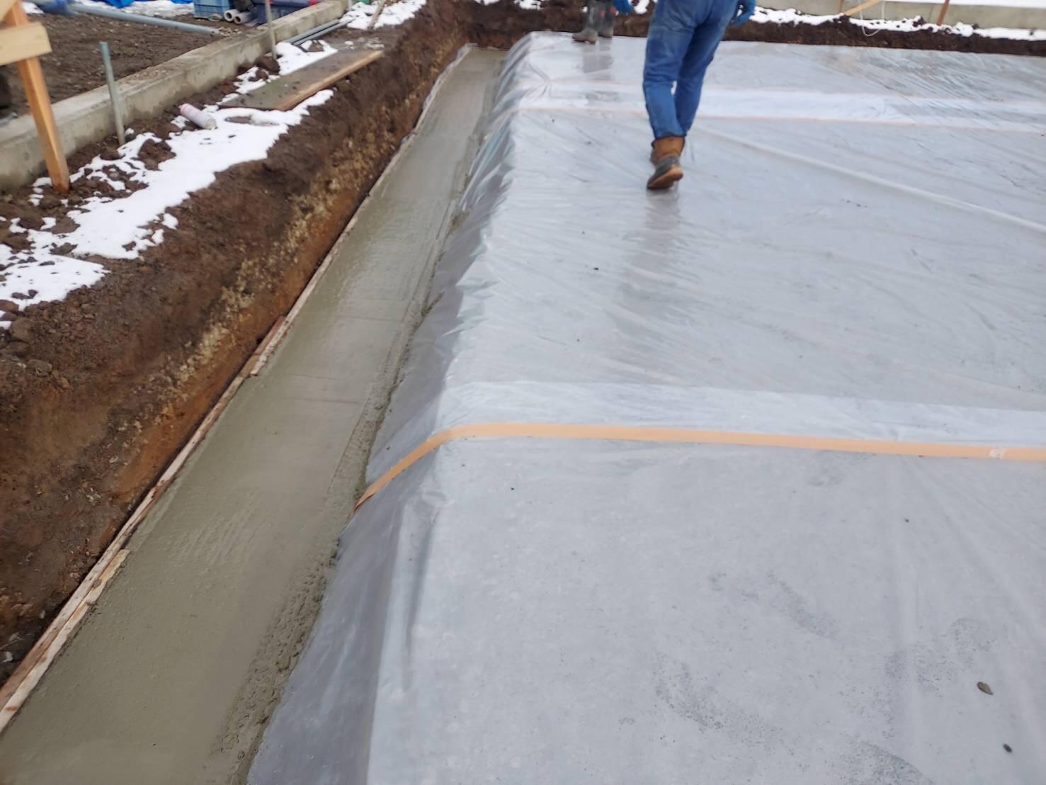 《防湿土間シート敷込み・捨てコンクリート打設》