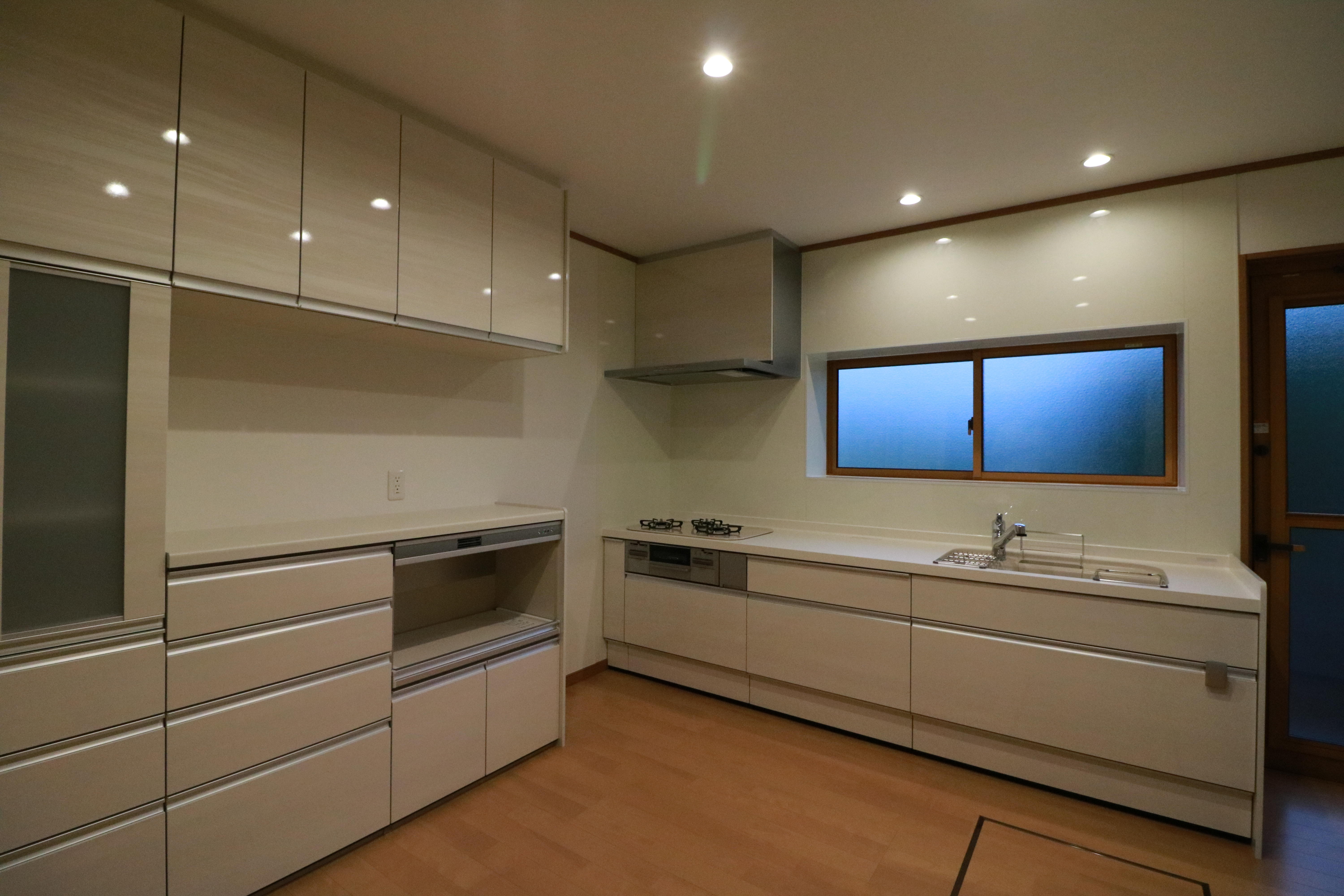 築46年がたち、冬寒くて使い勝手も悪かったキッチン。手を入れる機会に恵まれずようやくリフォームすることに。一年前にキッチン工事をしたお客様のご紹介で私どもがご相談させていただきました。キッチンの入れ替えだけでなく、根本的に部屋の断熱を強化をした上で年間通じて居心地のよいダイニングキッチンになりました。