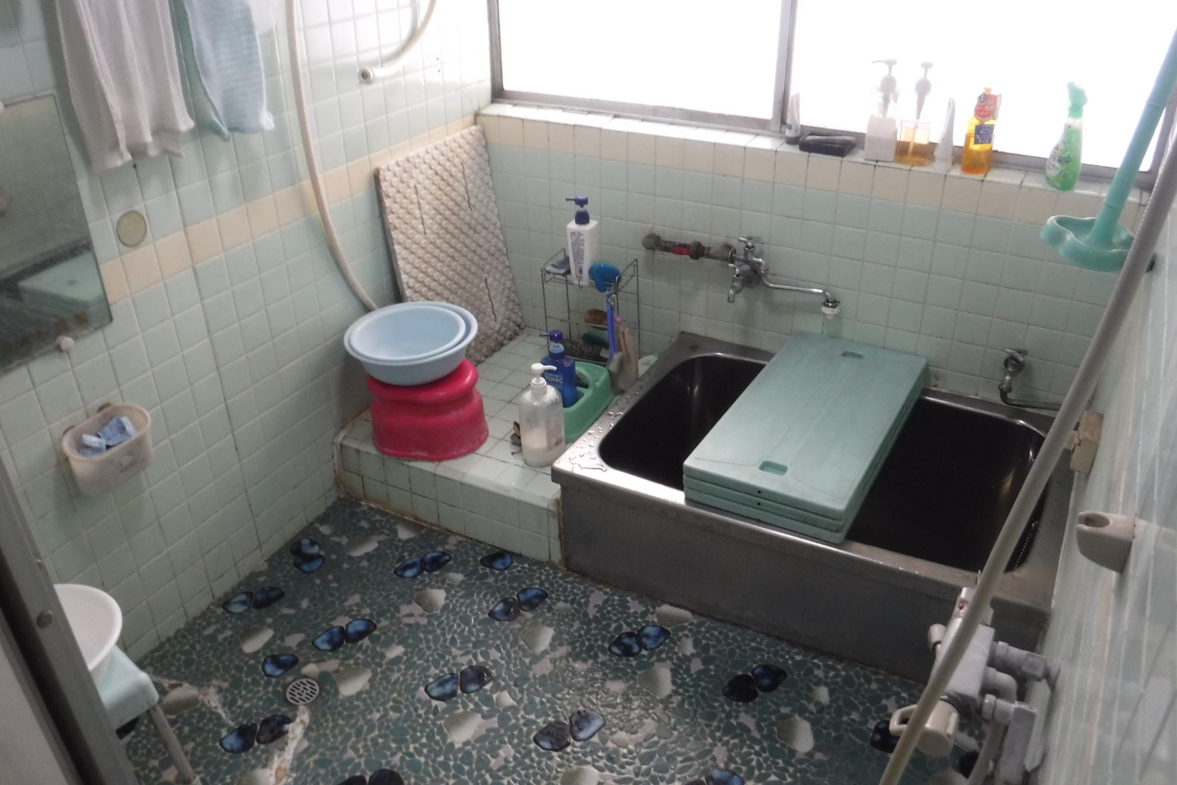 タイルでひんやりのお風呂が、暖かく明るいバスルームに