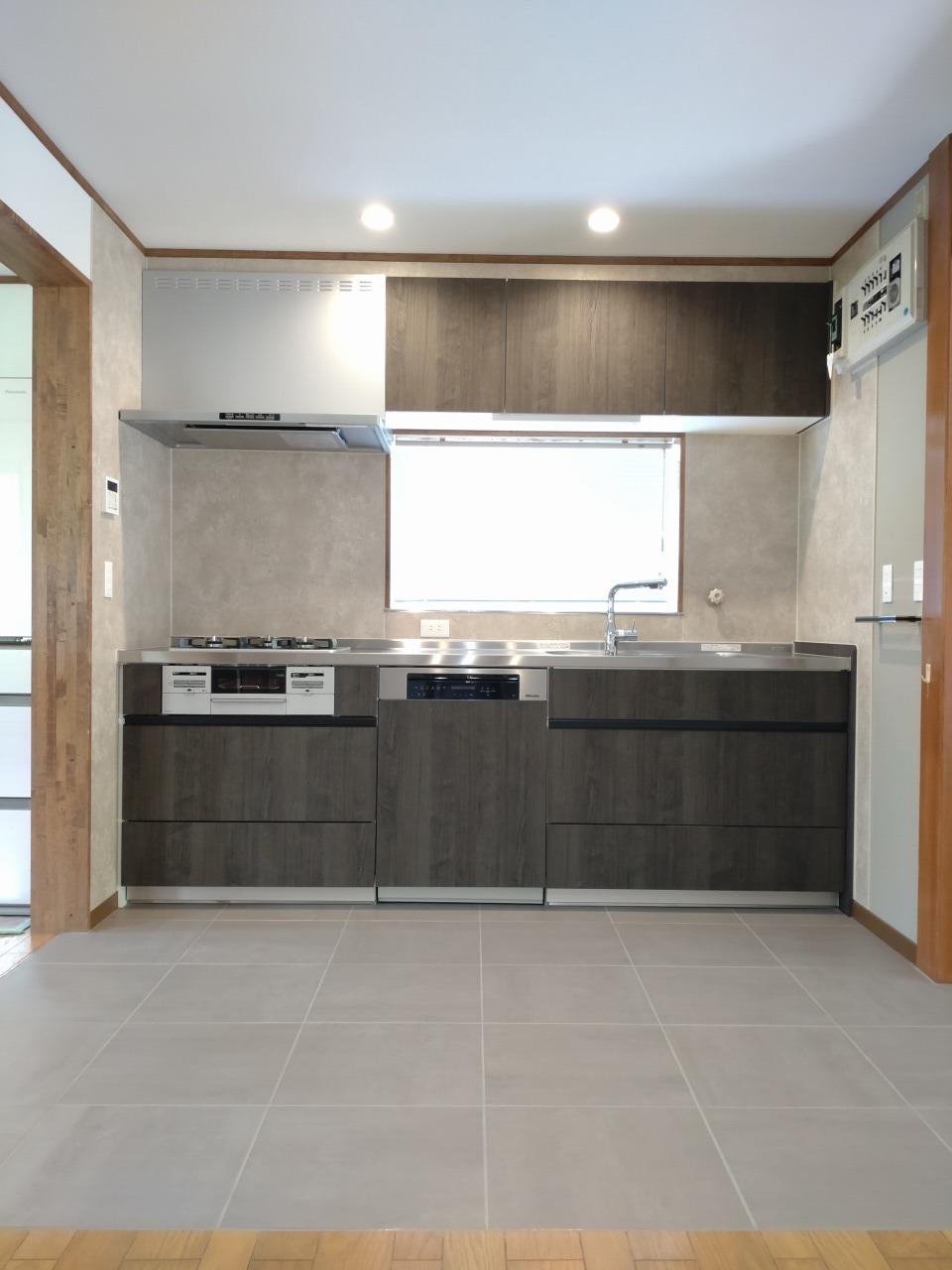 明るく広々とした、機能性を追求したキッチン。床には本格的にタイルを使用。お客様の細かいご希望で、スッキリしたデザインに。食洗器は、どんなキッチンにも馴染むデザイン・耐久性・使い心地、その全てにこだわり抜いたミーレビルトイン食器洗い機を採用しています。