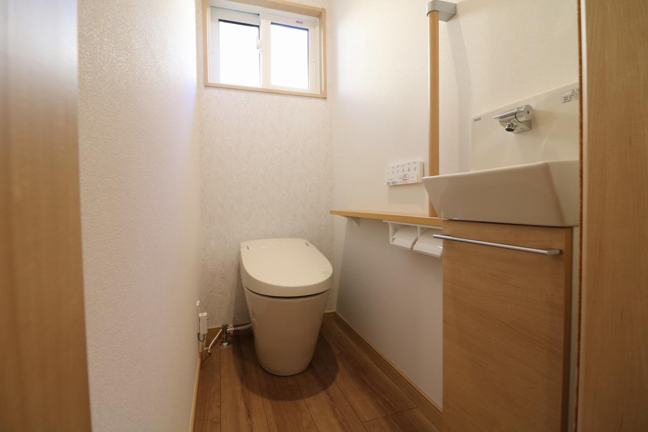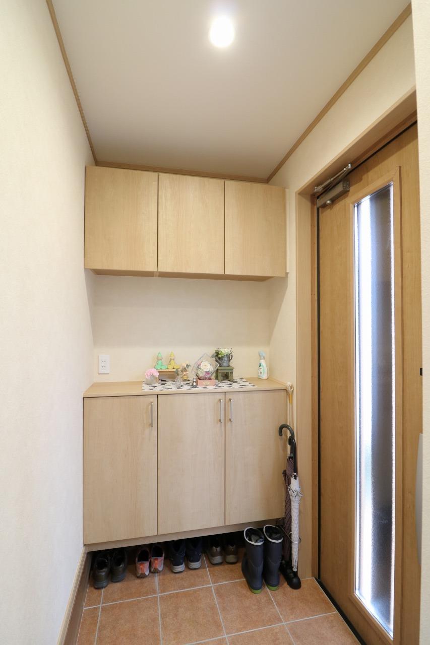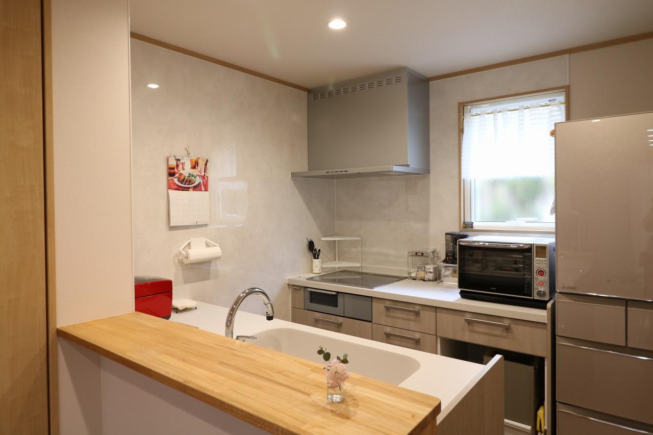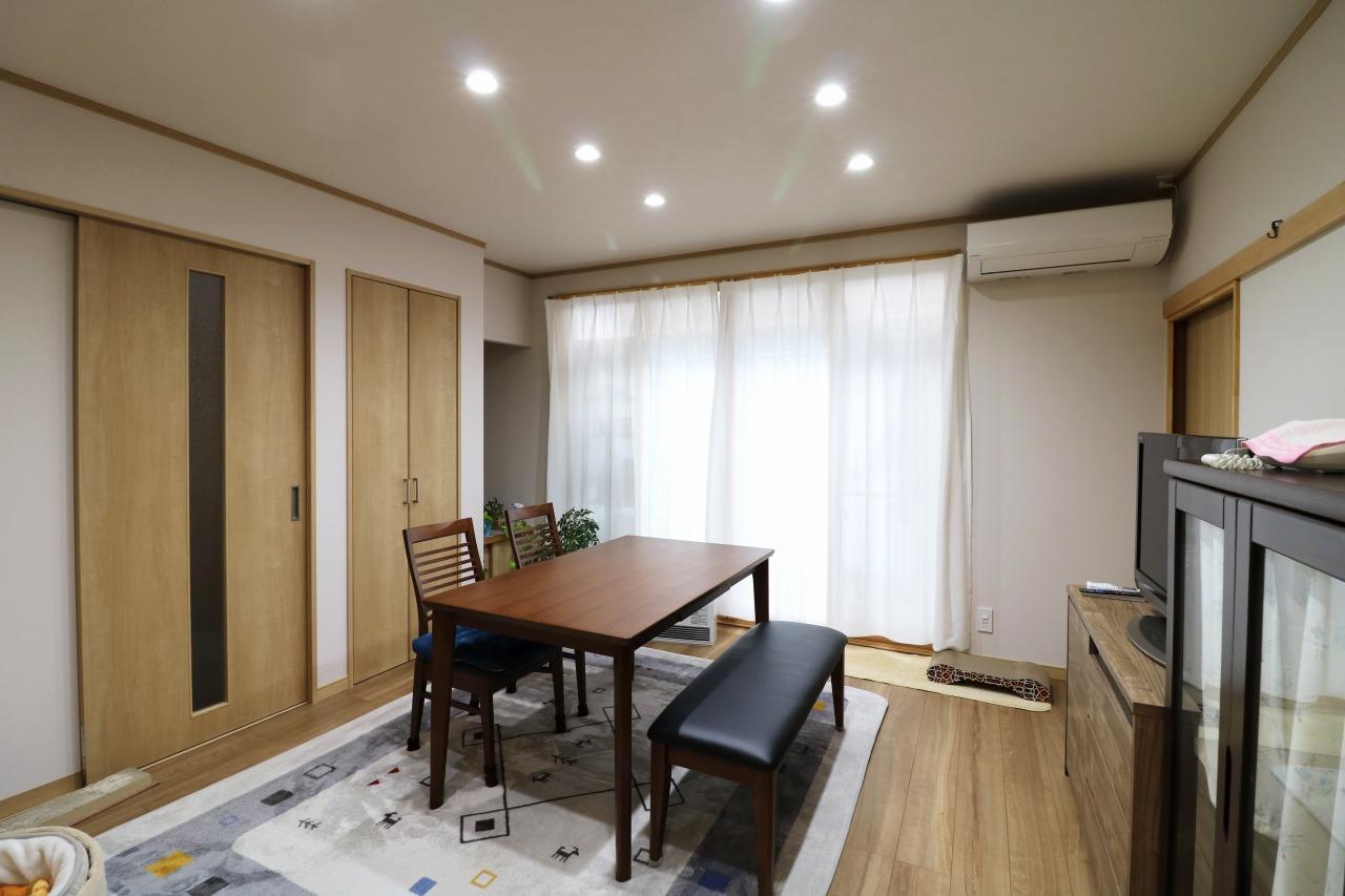 ドアや収納扉を木目調に統一し、ナチュラルな空間になりました。