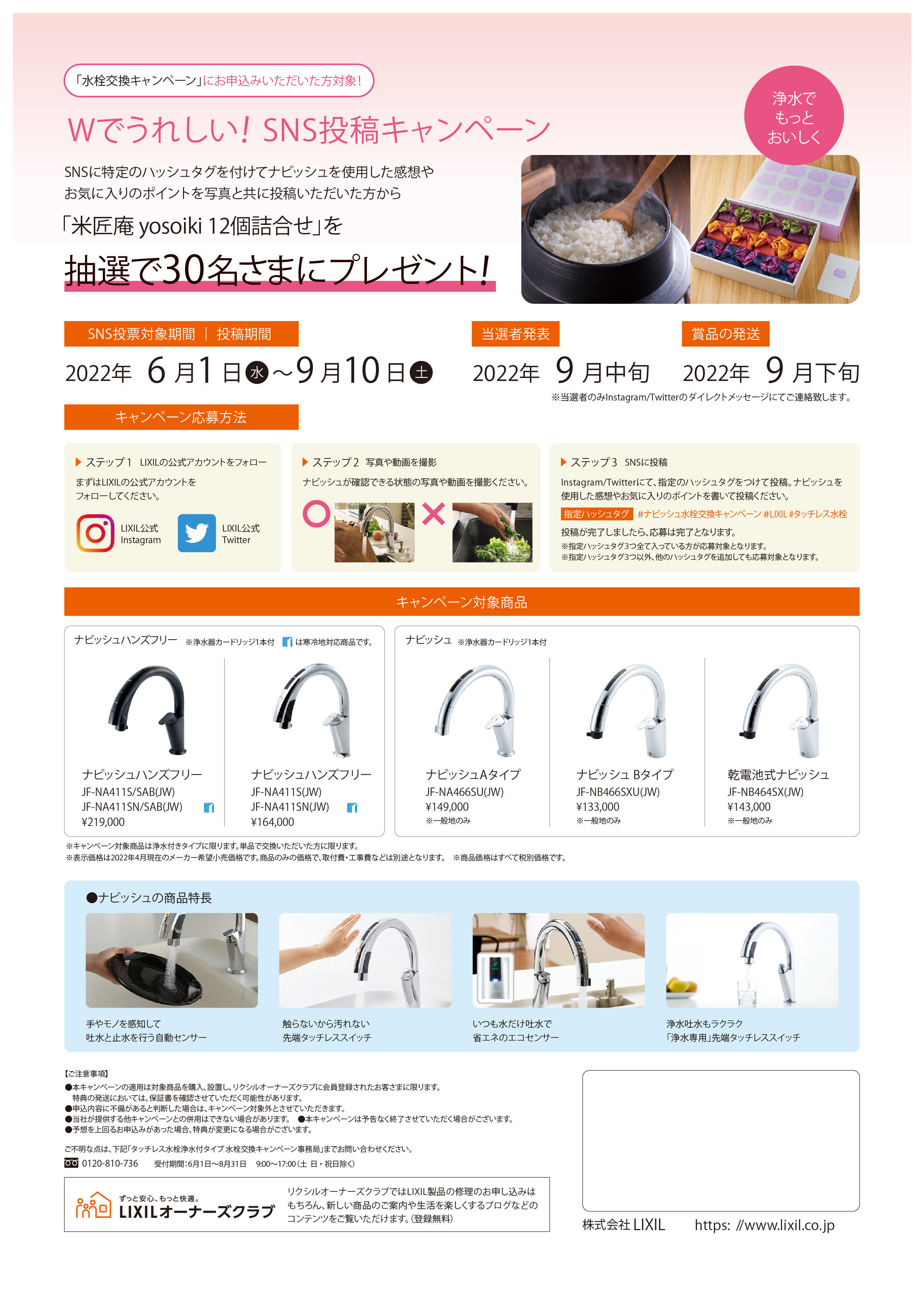 SNS投稿(Instagram or Twitter)キャンペーンで抽選で30名様に