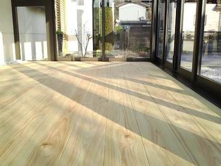 厚30㎜のヒノキ板を使用したサンルーム、洗濯物やお昼寝に最適