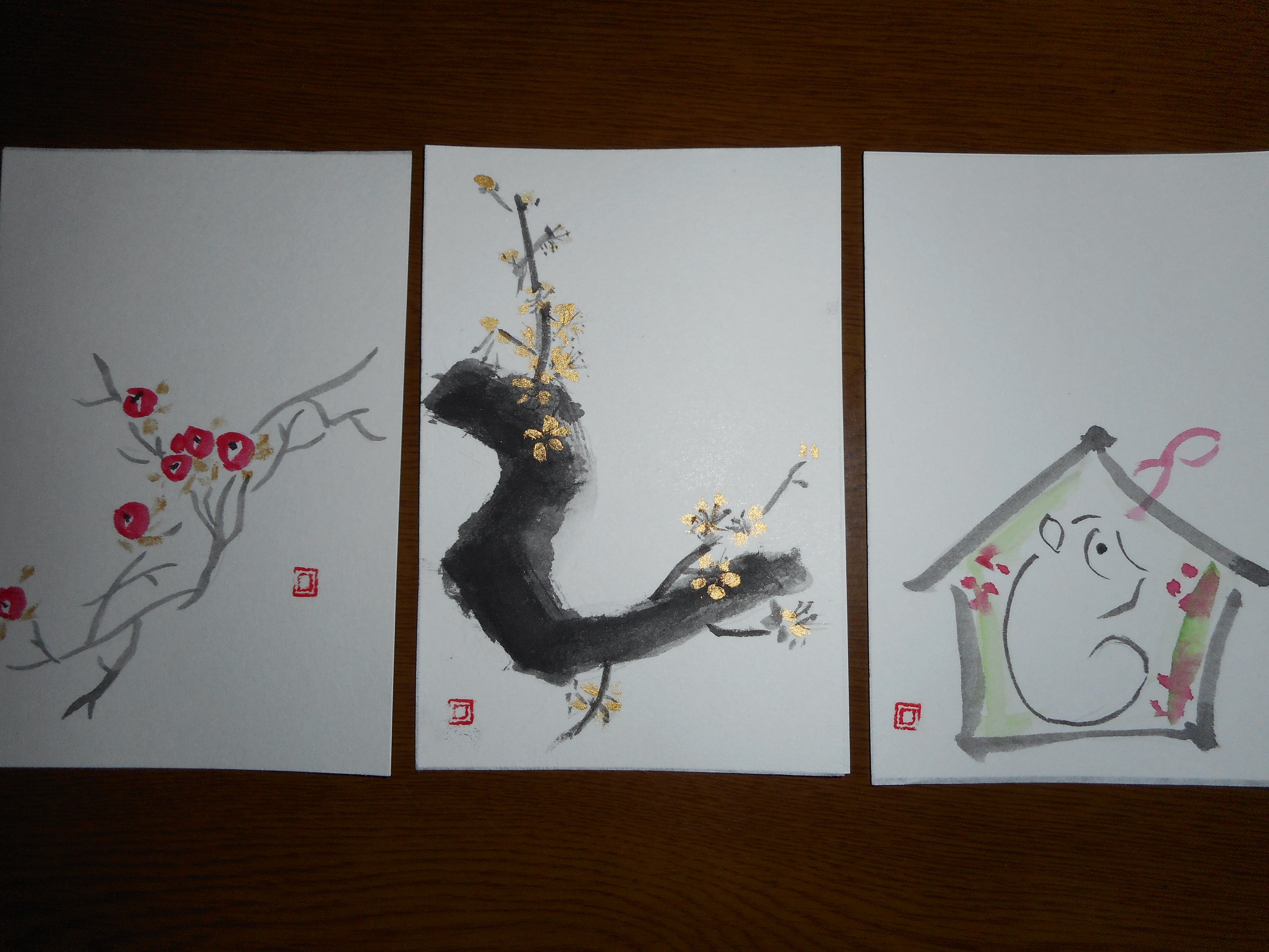 土曜日に【水墨画で年賀状を描く】という講座を体験してきました。