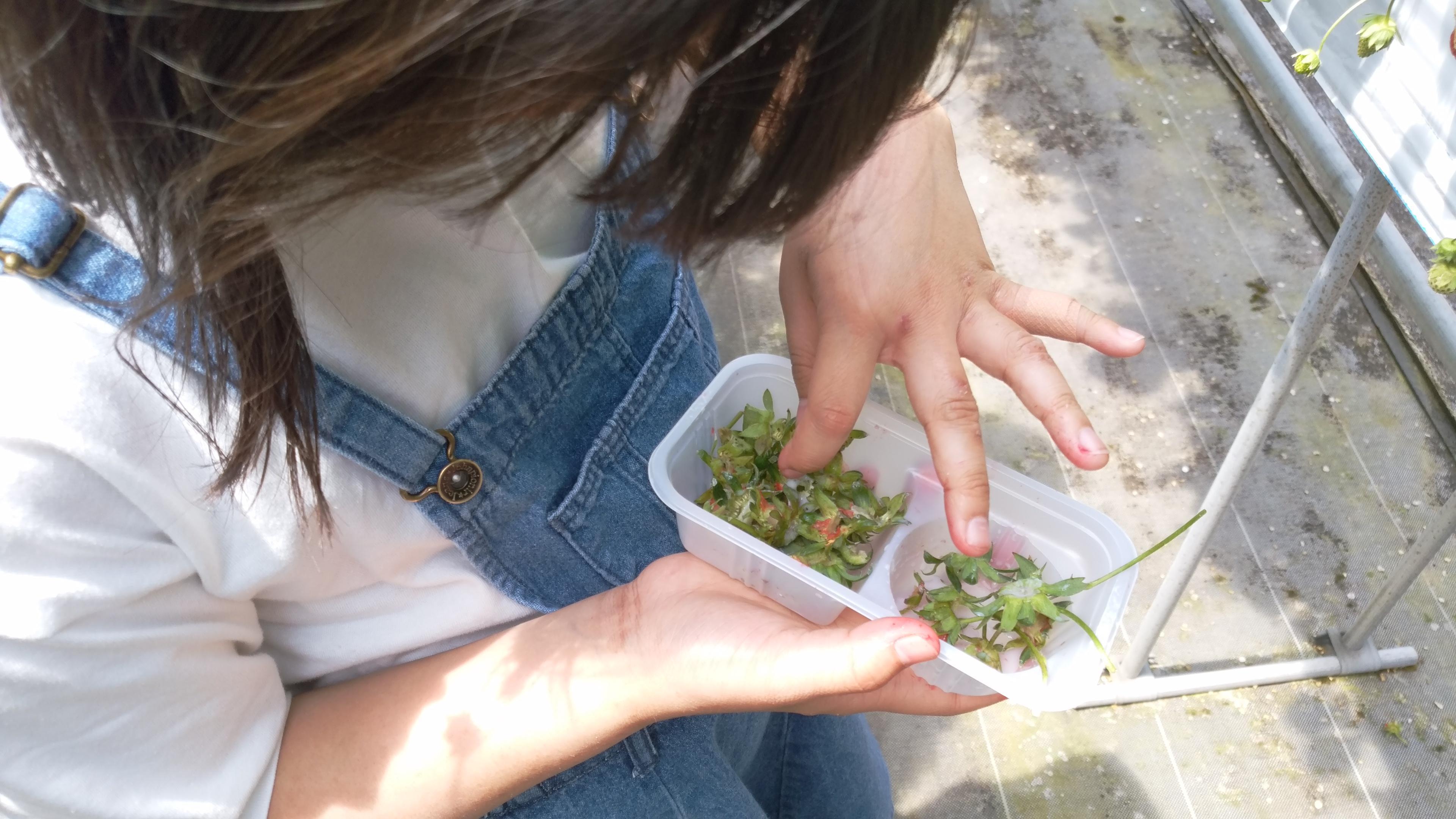 いちごの品種は全部で3種類あり、「紅ほっぺ」「章姫」「レイベリー」・・・。