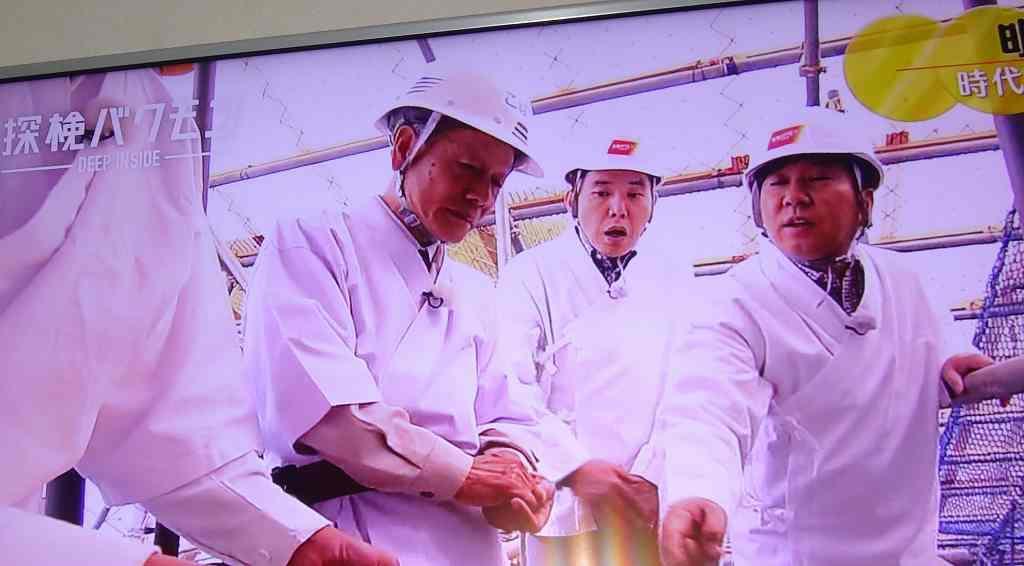 清水建設時代に同じ部だった小橋さんが、爆笑問題の二人を施工中の屋根を案内していました。