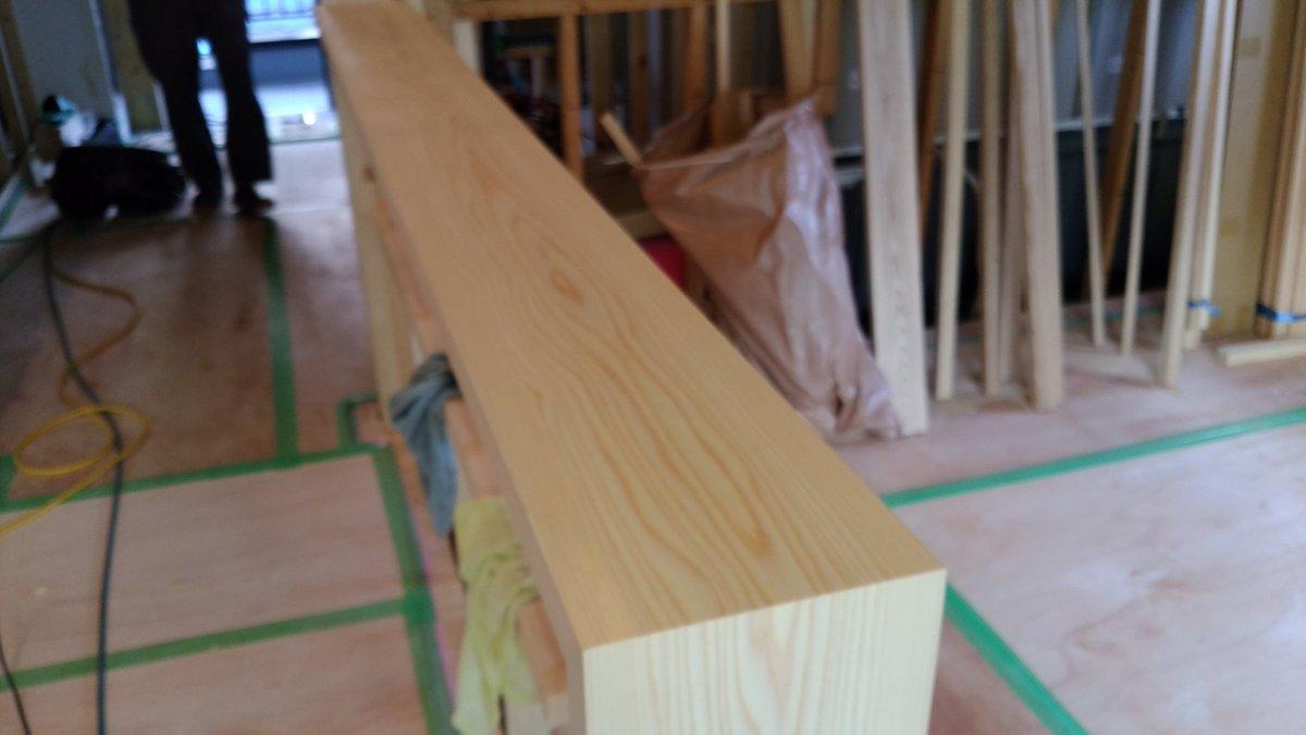 O様邸キッチンカウンター施工状況です。杉無垢材です。