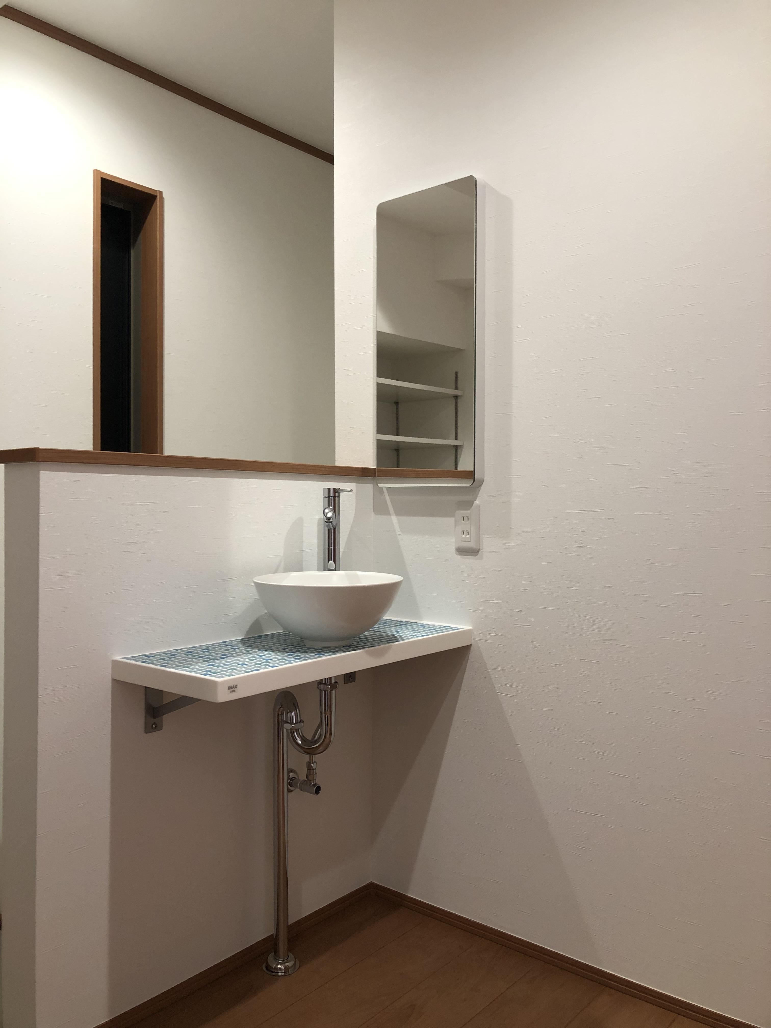 2階ホールの一部にどこでも手洗いを設置しました。奥行がコンパクトなので邪魔になりません。1階の洗面まで行く煩わしさから解放されます。
