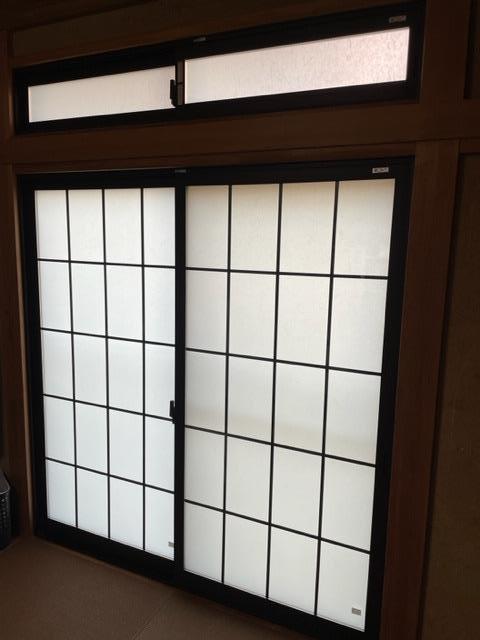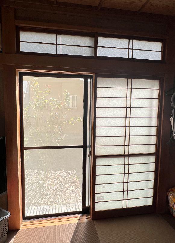 和障子を撤去して、和紙調の格子付ガラスにてインプラスを取付けました。毎年の和障子の貼り替えからも解放され和室の雰囲気も壊さず断熱対策ができます。