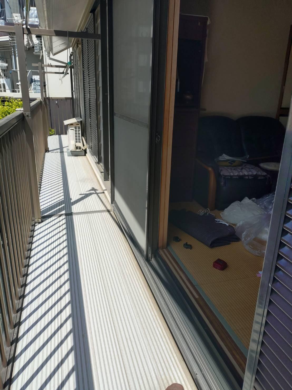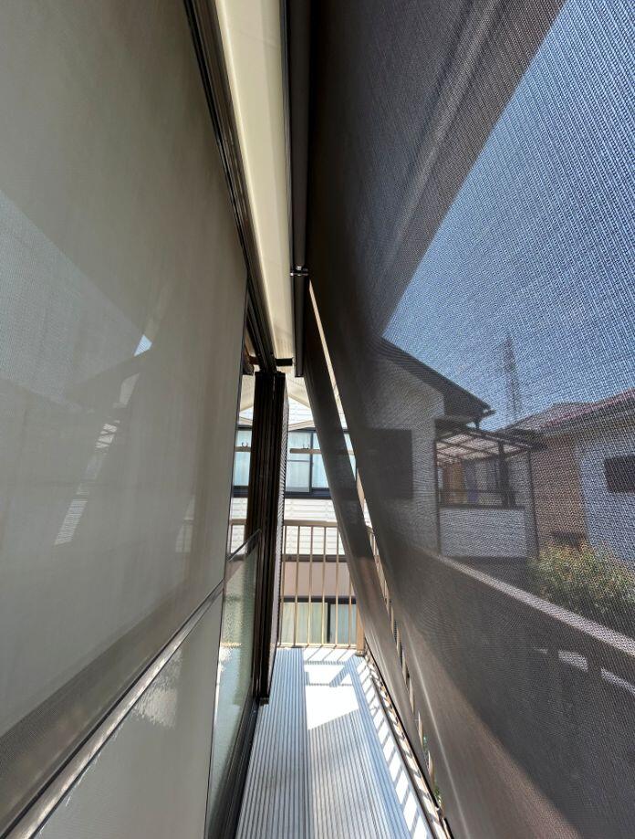 日差しが強く差し込んでくることを解消したいと連絡をいただき、スタイルシェード設置にて対応しました。 ベランダ手すりに固定部品を取付けると下部より日差しが入る為、角パイプを別途取付けし、そこに固定部品を取付ることにしました。