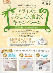 システムバスルーム『Arise』を見積もりされた方限定キャンペーン!