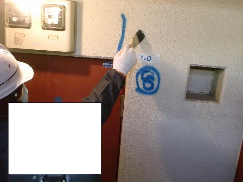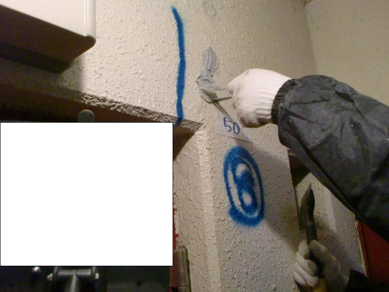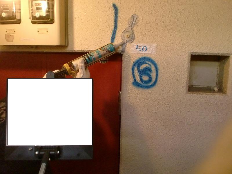 ひび割れに沿ってはくりシールを打って座金を取付!