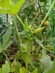 数日するとこの花ごとポロッと落花して、その後は小さなオクラが育ってくるのですが、
