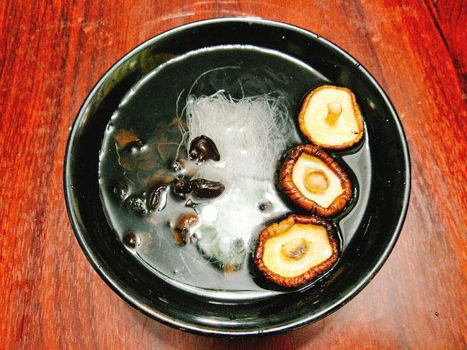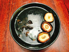 ① きくらげ、シイタケ、春雨はそれぞれ水に付けて戻します。