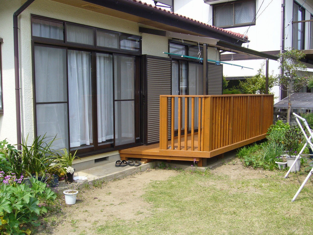 南面掃き出し窓から開放感あるウッドデッキスペースへ。 多目的に利用できます。 防腐・防蟻処理した木材を使用し、耐久性に優れています。