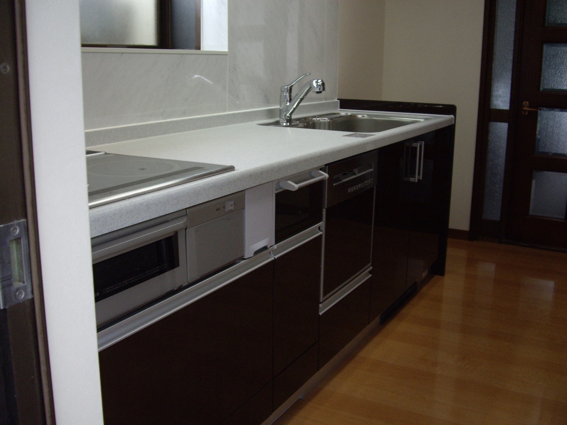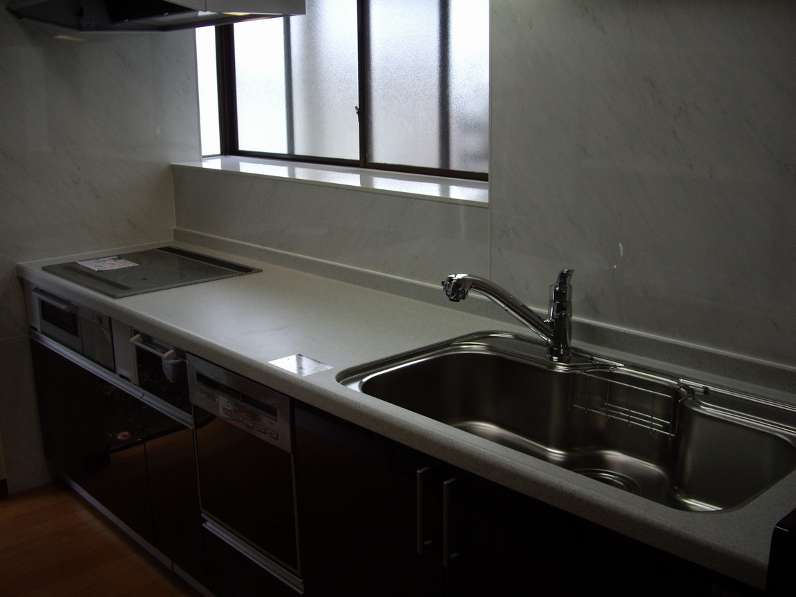 鏡面仕上げのTOSTEM製キッチンクレディアです。 施工前写真は、撮り忘れました。 素敵なキッチンをごらんください!