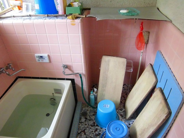 昔から使っていた浴室なので、浴槽も壁も昔ながらの独特な作り
