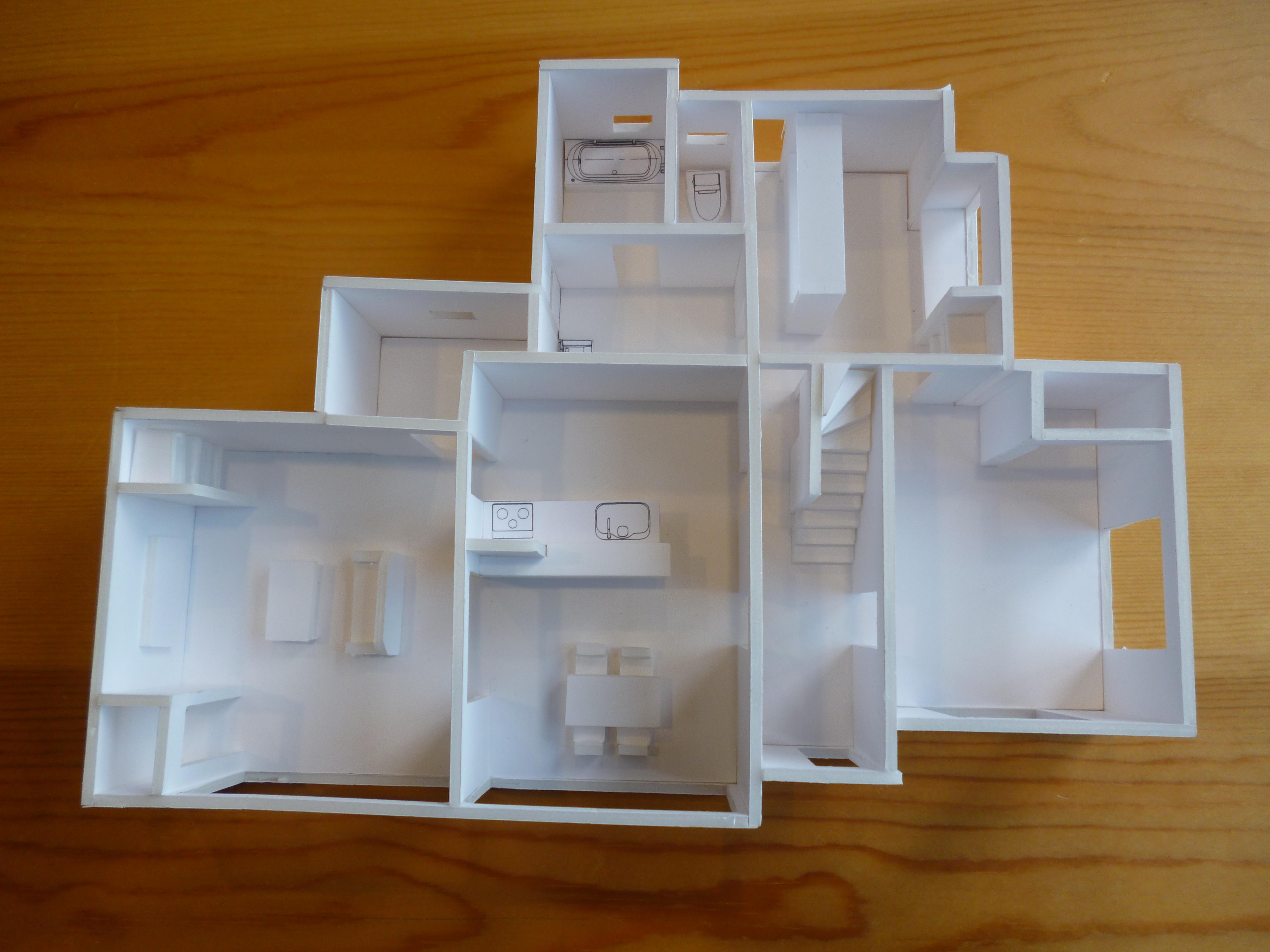 画像左上の端にあった物置を減築して、ダイニング・キッチンがお家の中心になりました。