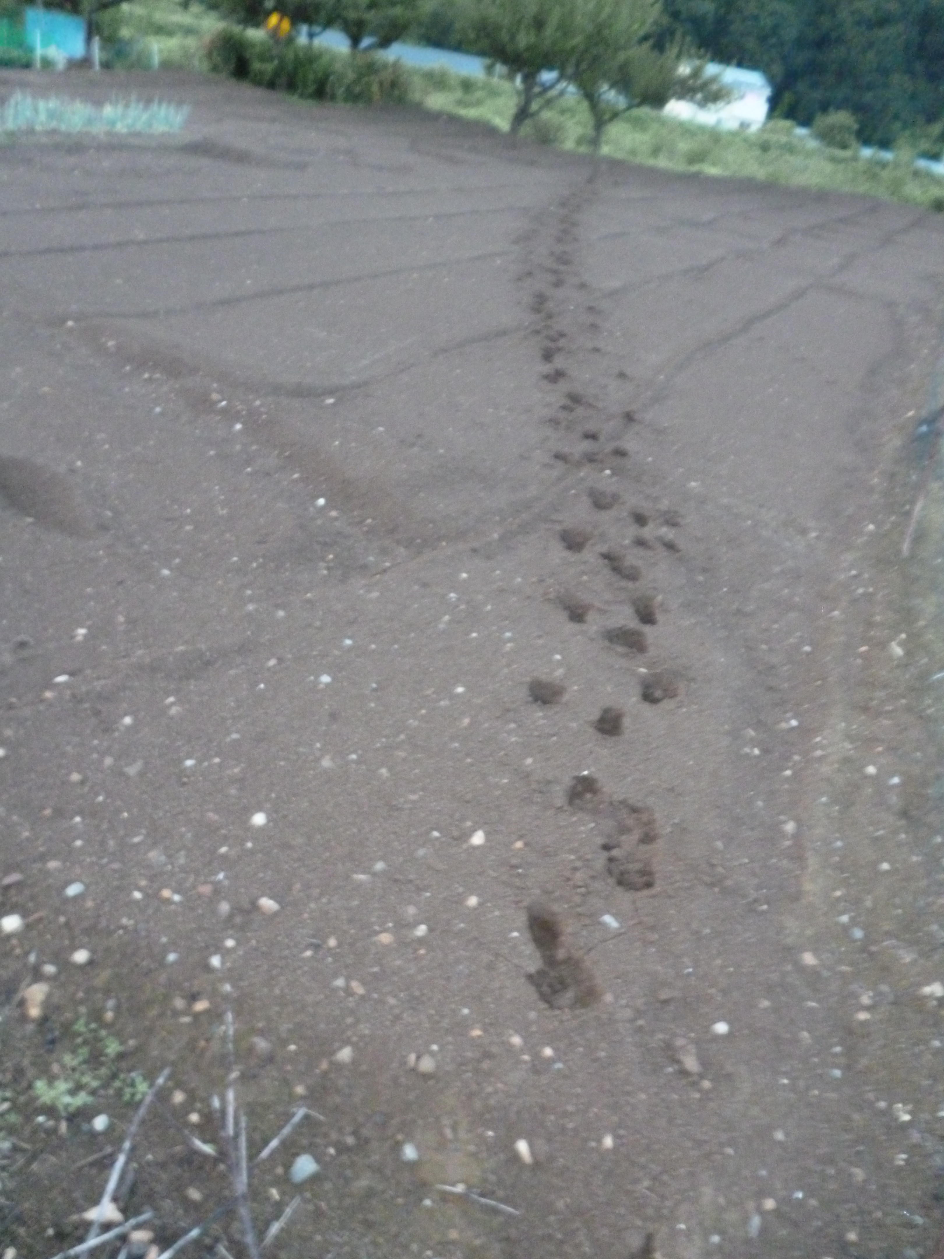 いつもキレイに耕されているのですが、雨上がりには必ず足跡が・・・