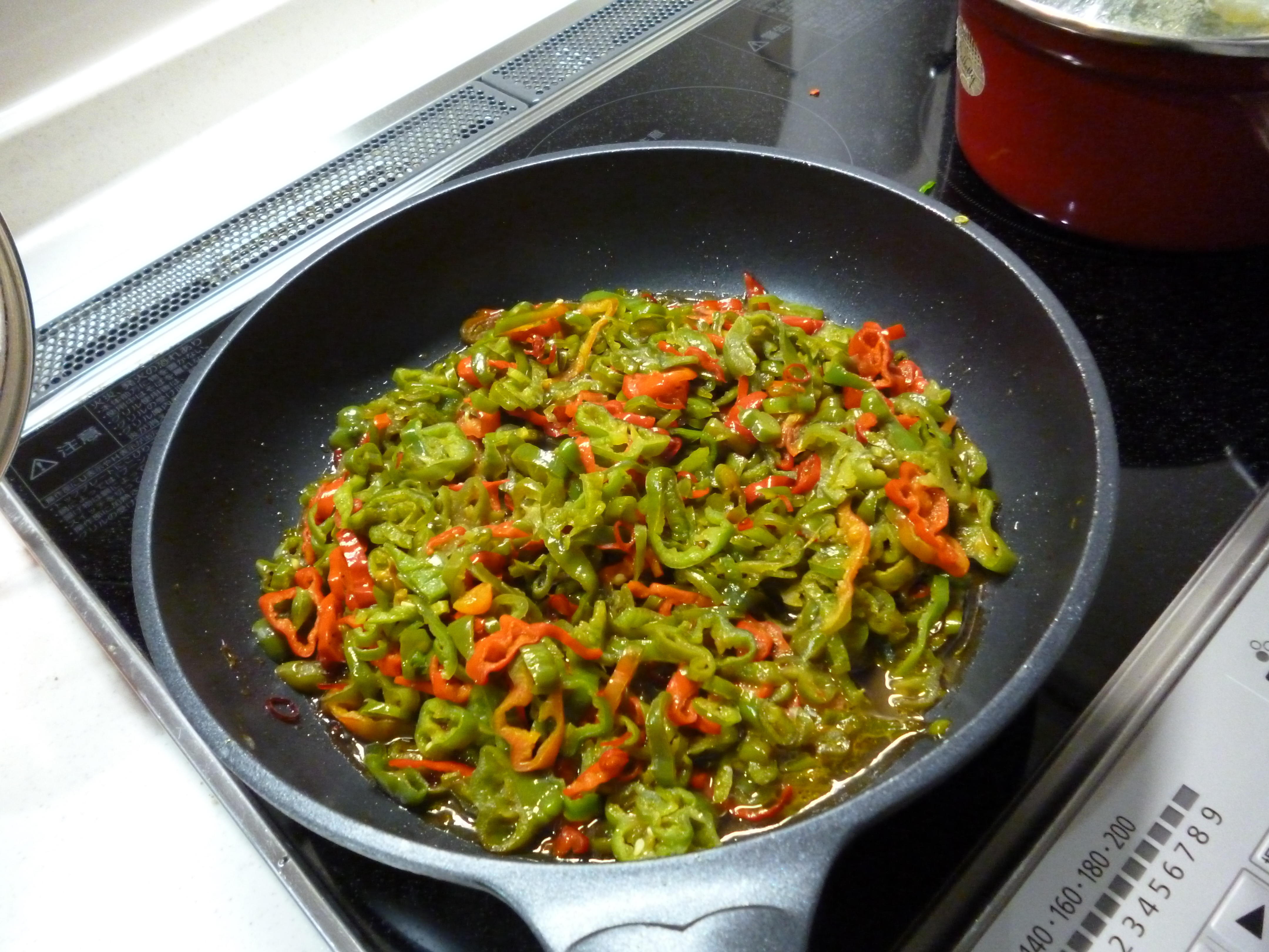 私が好きなのは、種を抜いて輪切りにしたピーマンのみの炒め煮です。