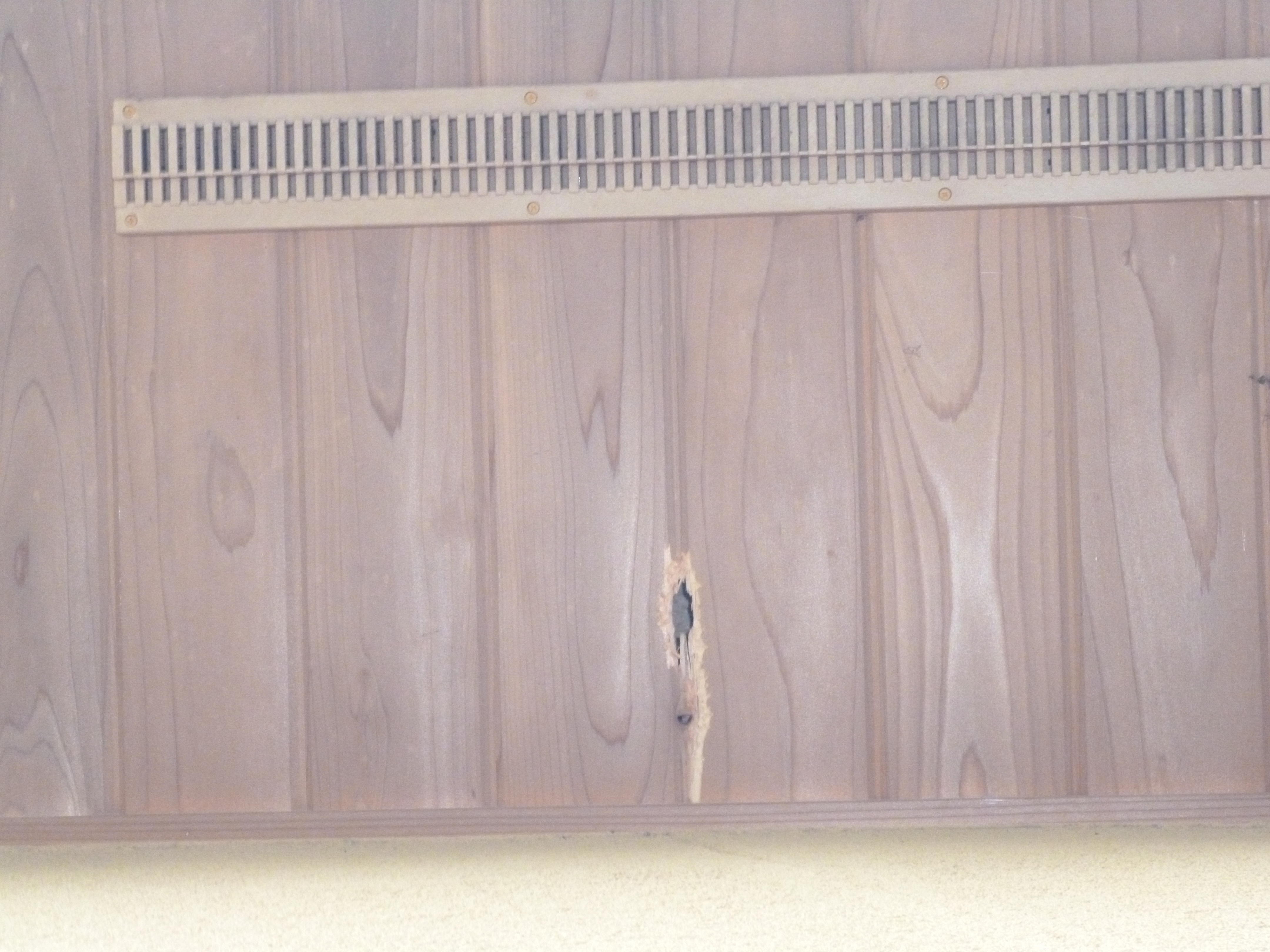 ふと、上を見上げるとな・な・なんと!軒天に穴が・・・Σ(゚д゚lll)ガーン