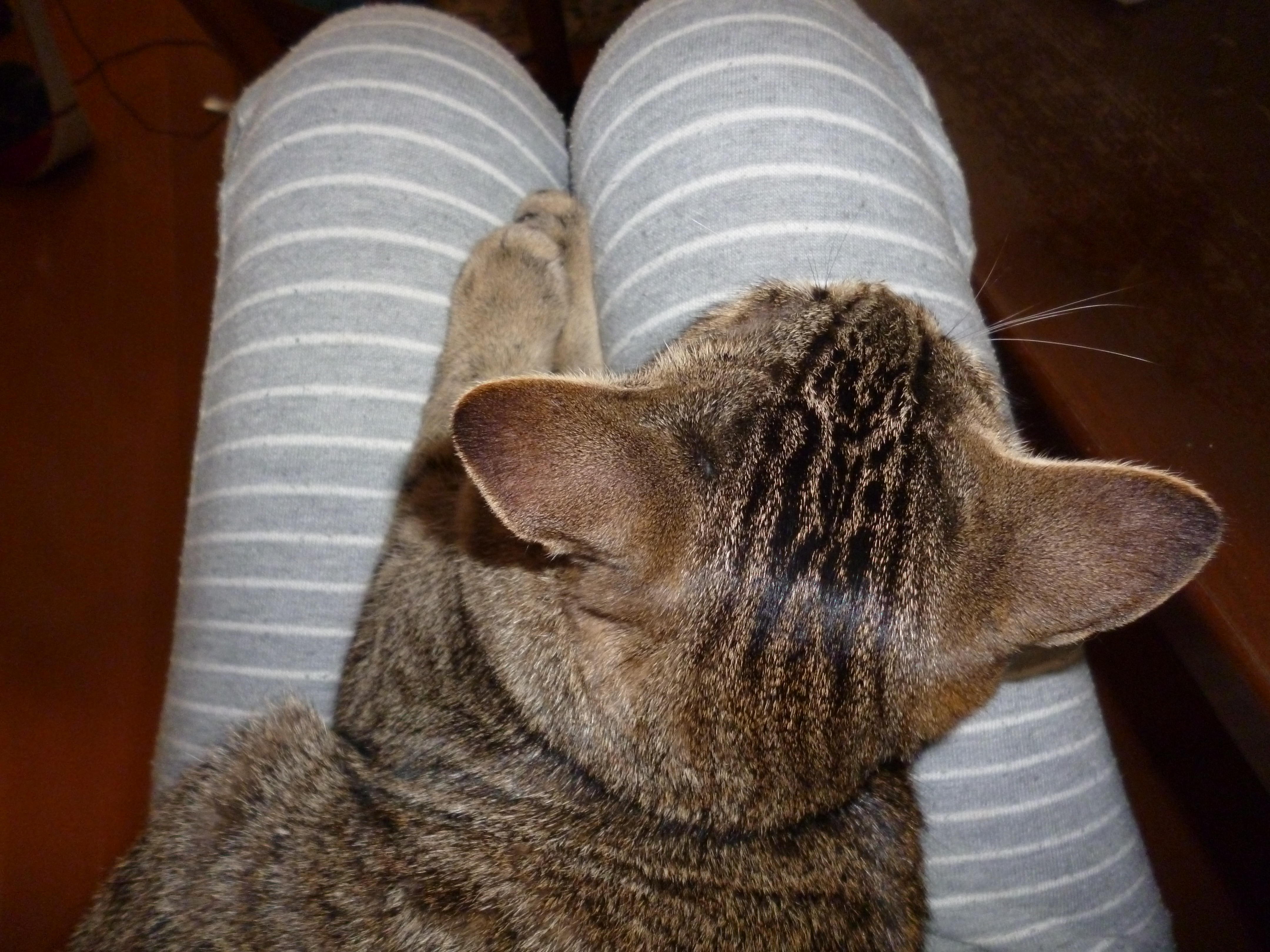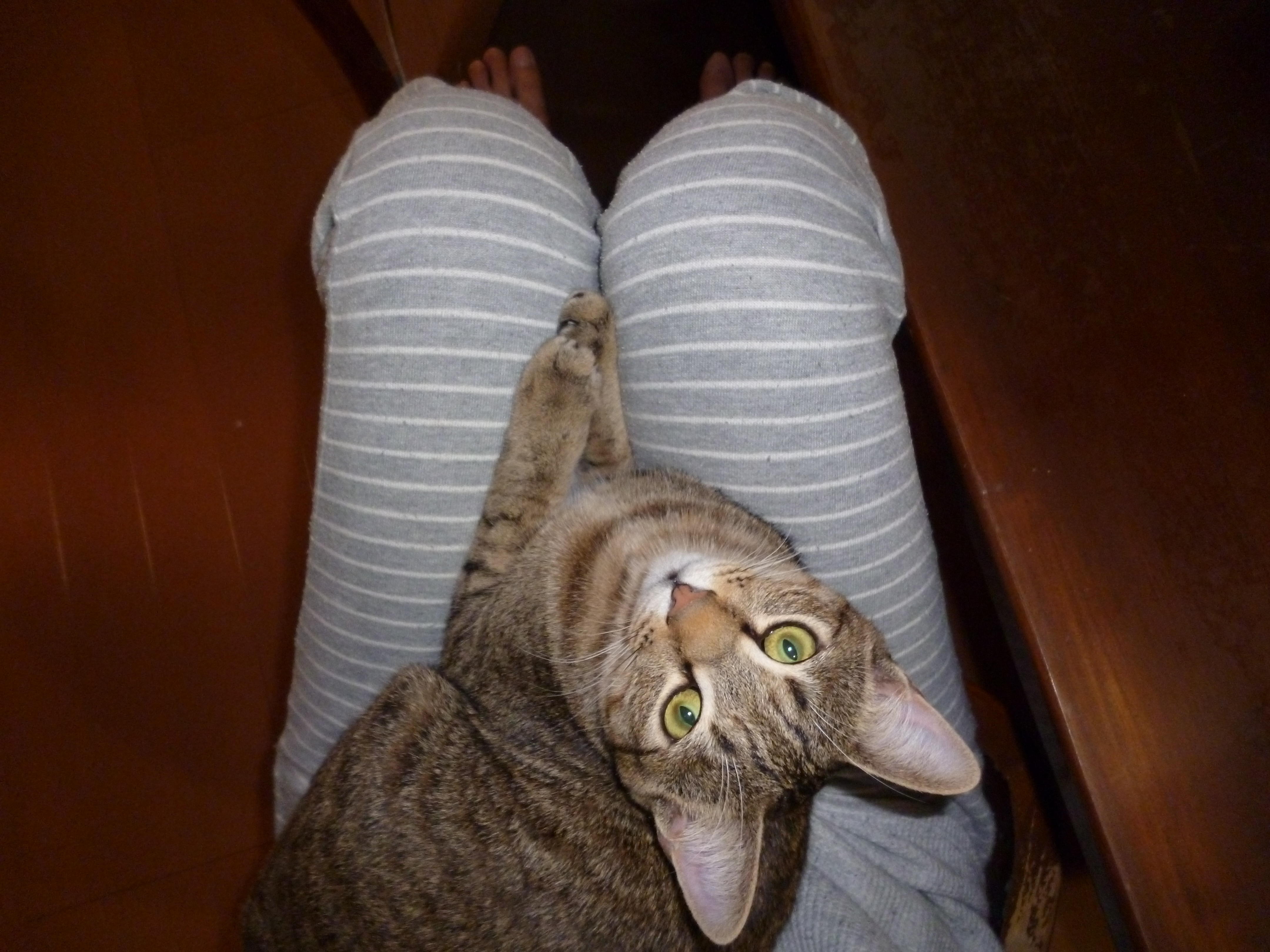 最近、椅子に座っていると勝手に乗っかってくるようになりました。