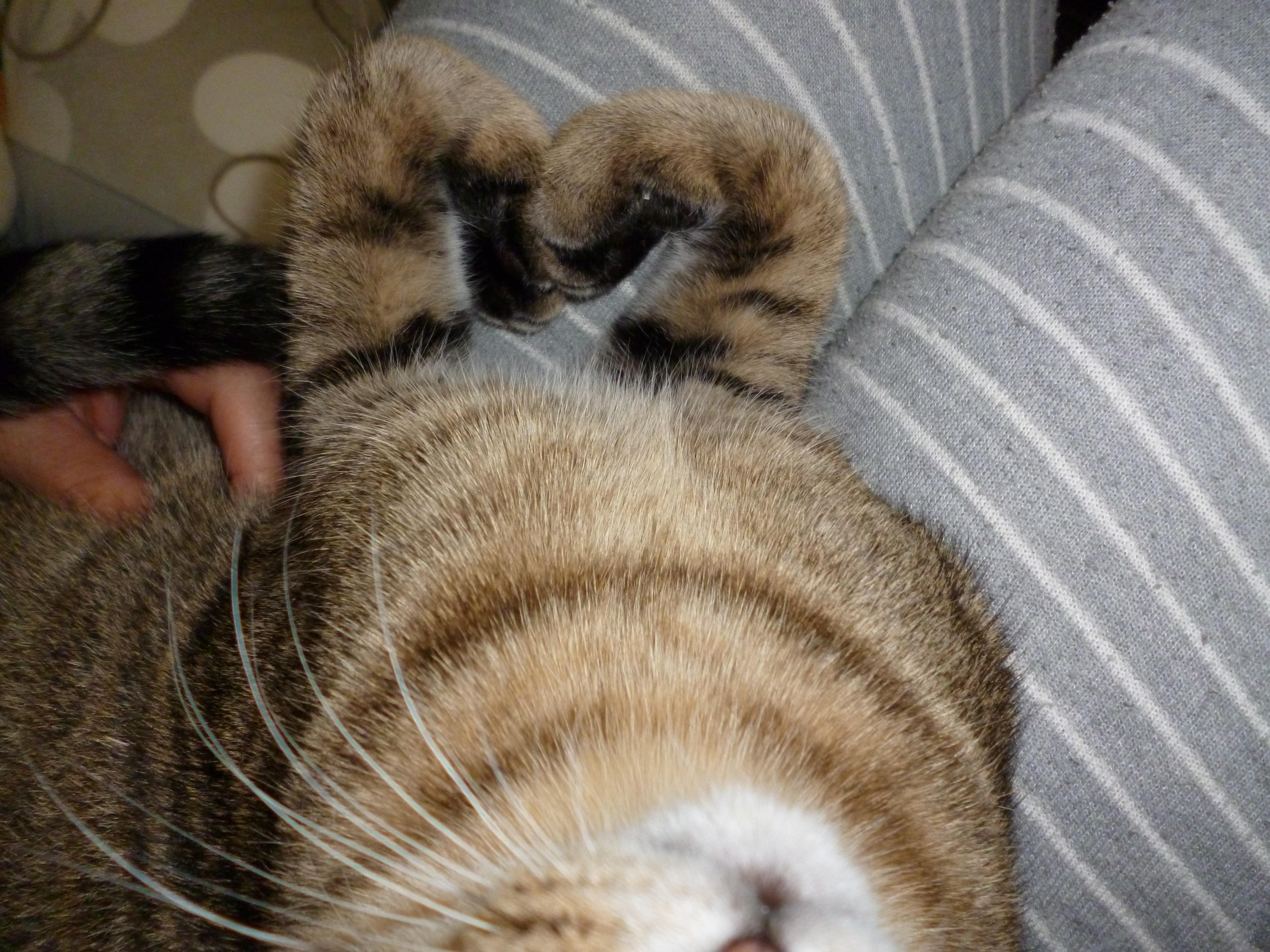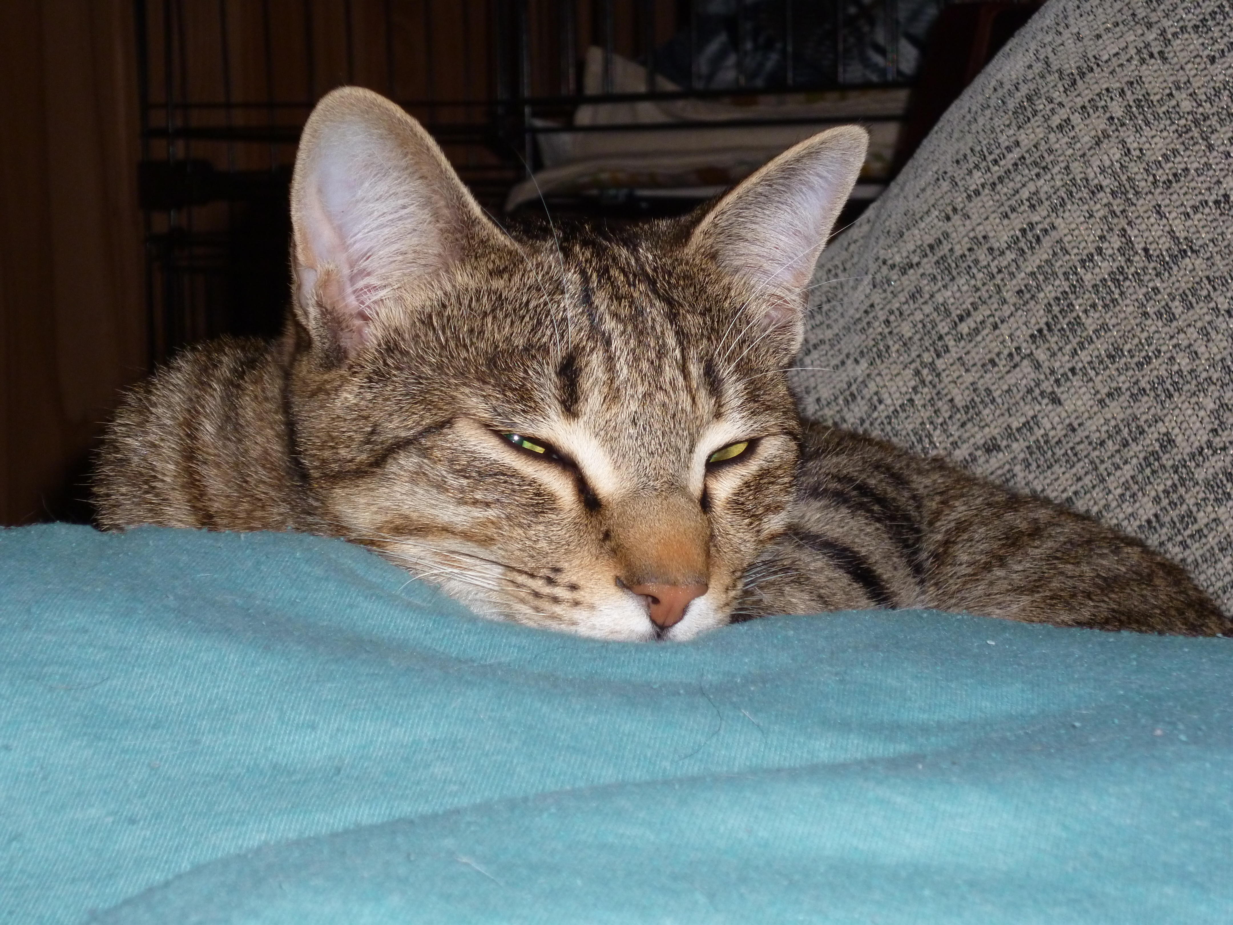 薄目をあけてあごのせポーズ。可愛いを狙ってますね( ´∀` )