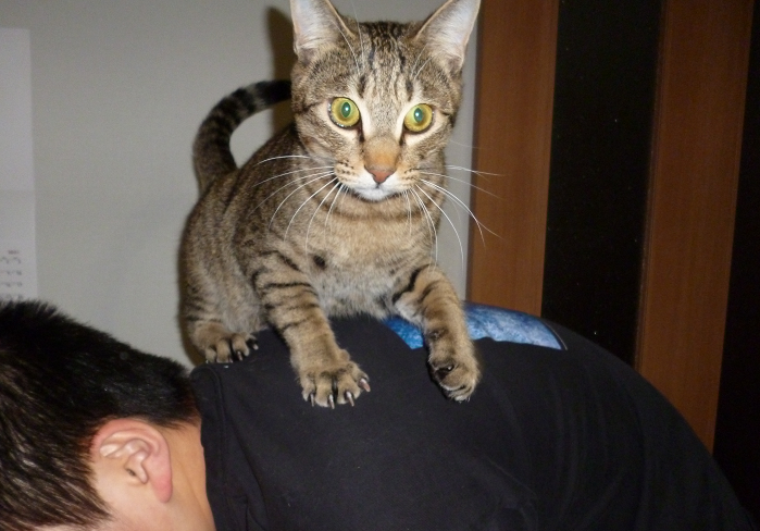 かまっていたらソファーに居たはずの猫ちゃんがハシゴを上ってやってきました。