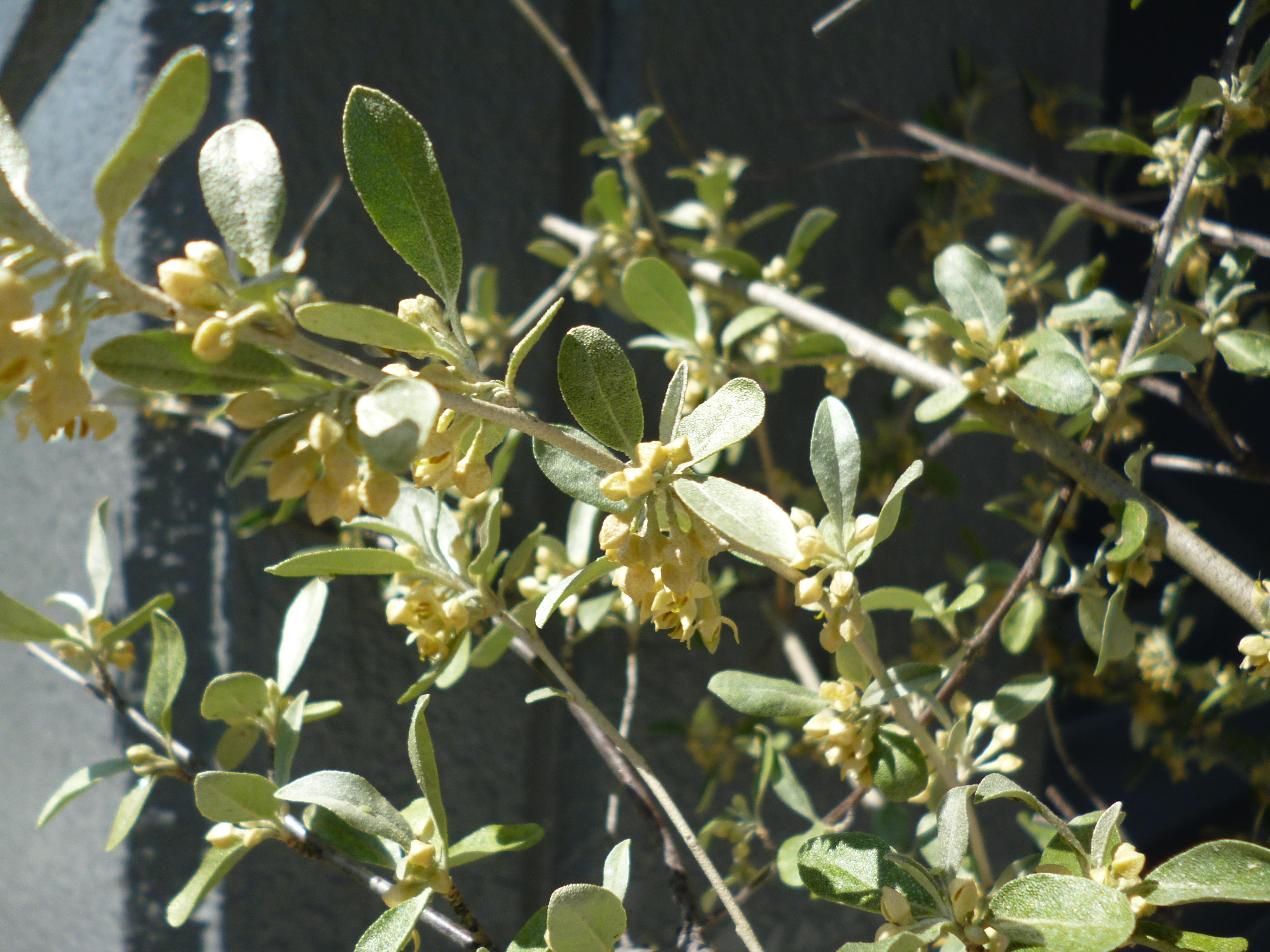 会社の入り口脇に鉢植えしてあるロシアンオリーブにたくさんの小さな花が咲きました。