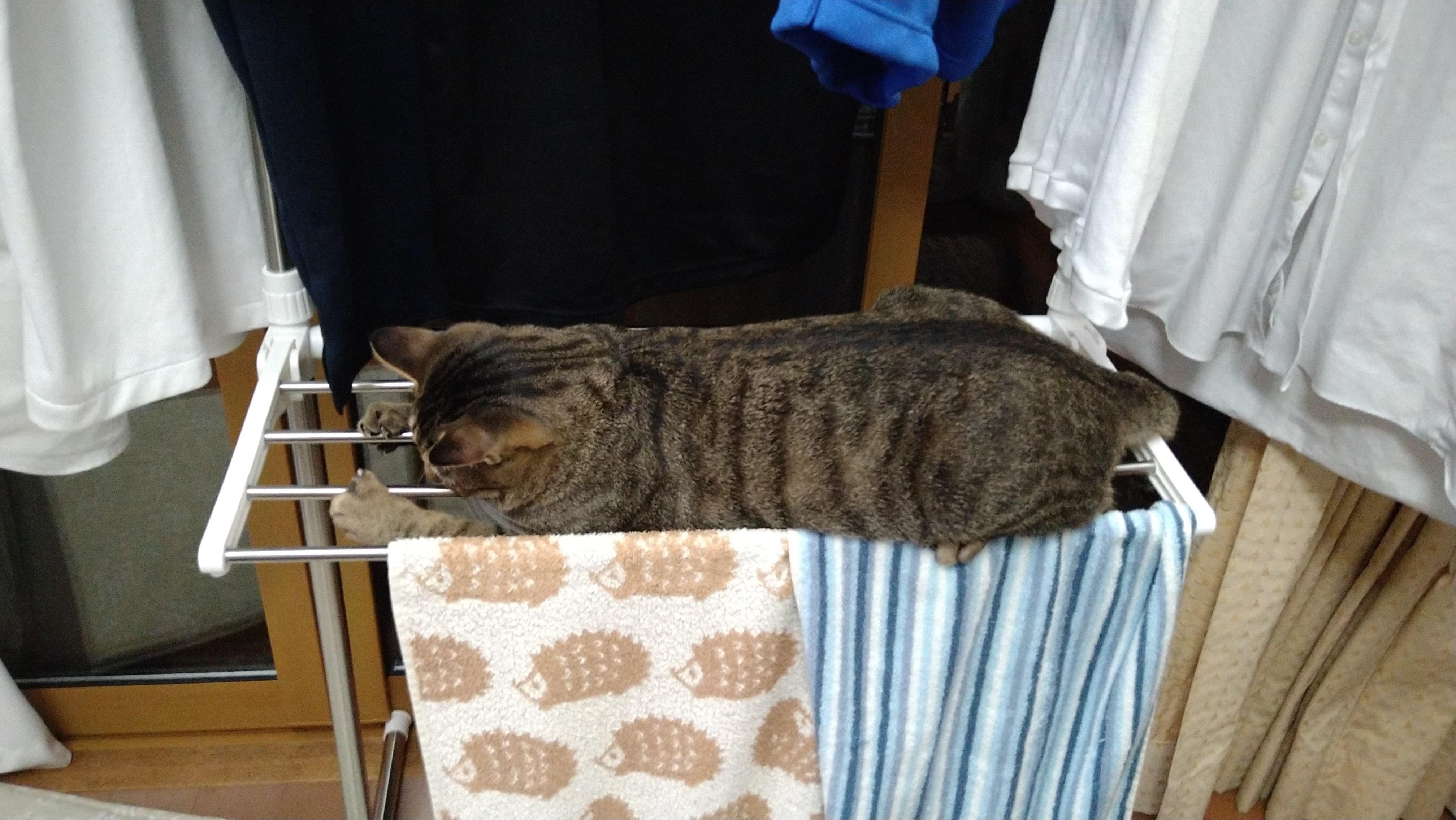 お天気が悪いからと部屋干ししておいたらすかさずのってきました(^^;