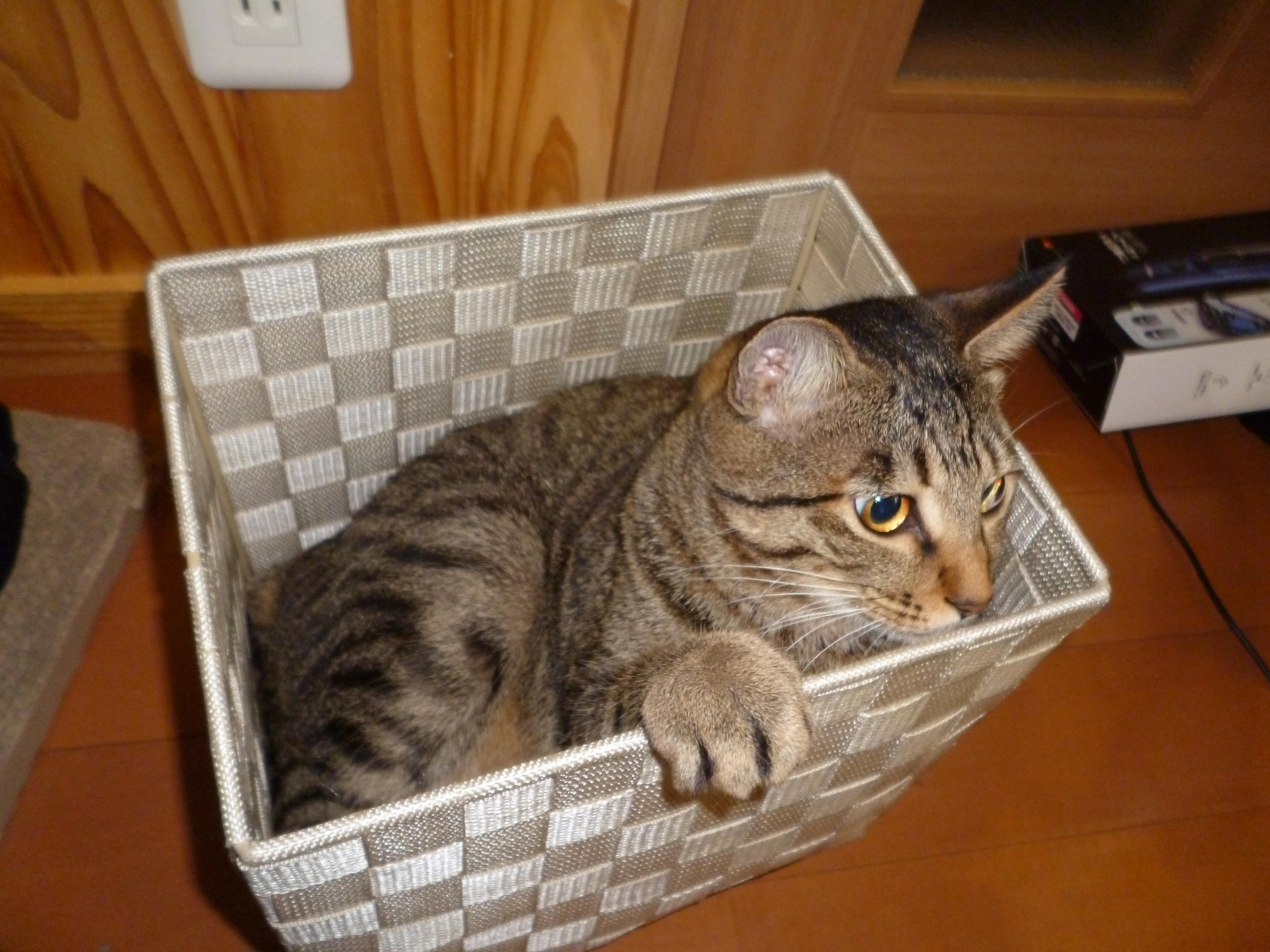 猫ちゃんは、散歩道具入れになっていたカゴが空いたのを見計らって即効inしました。