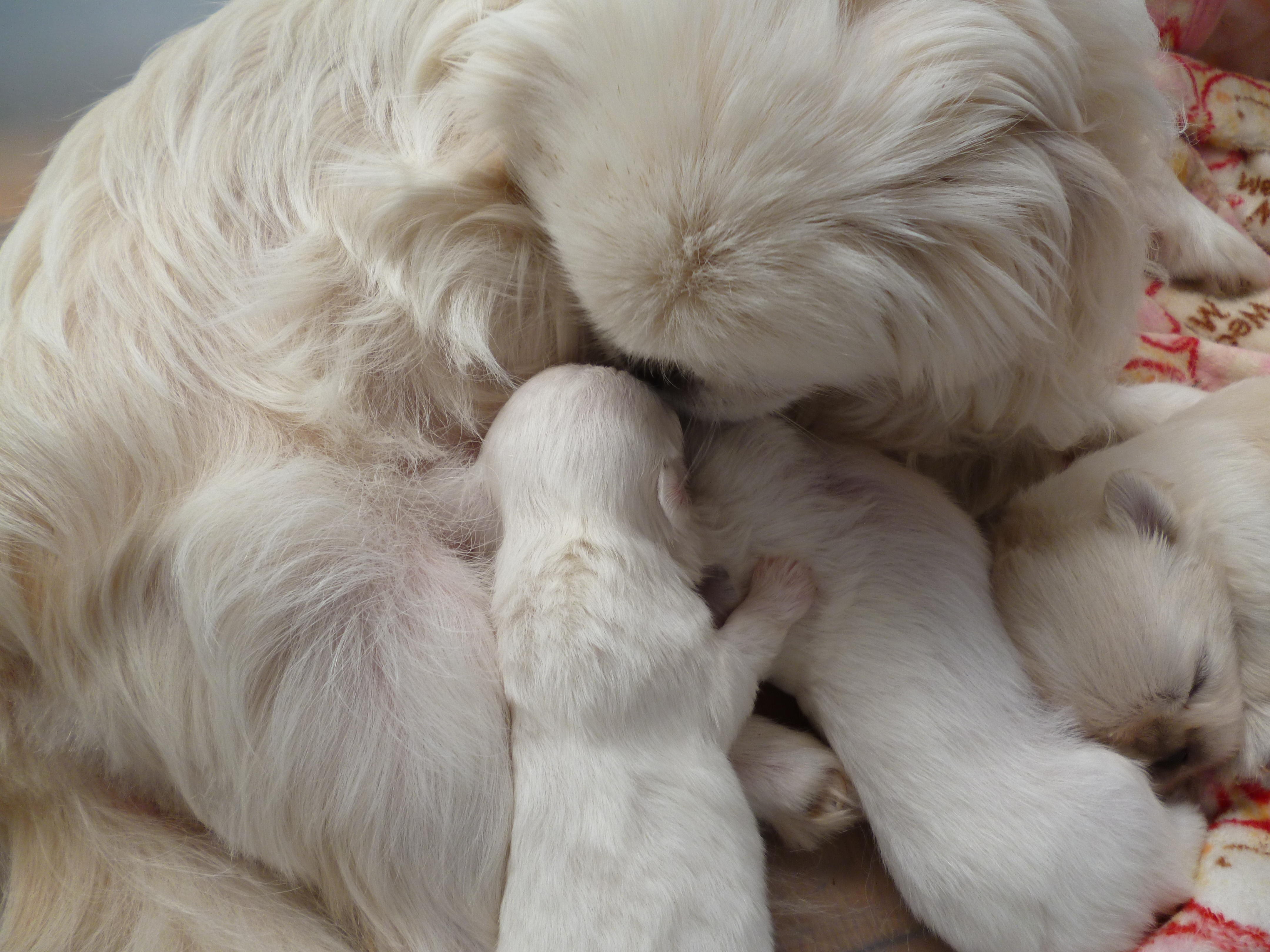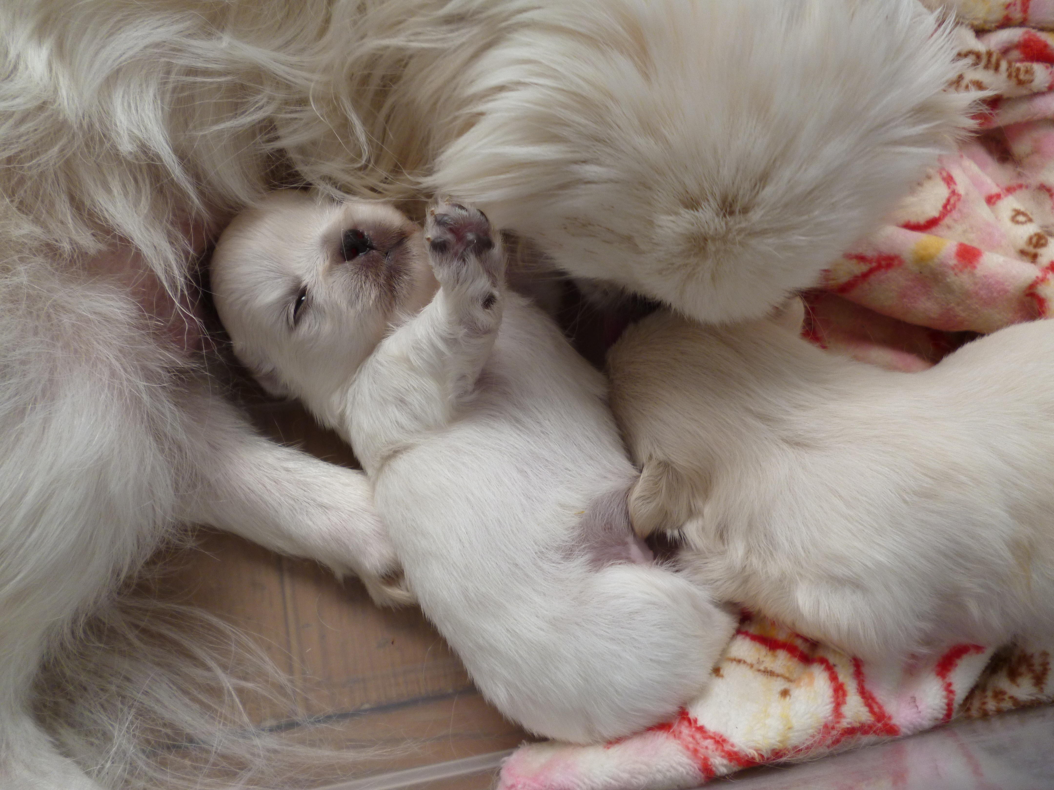 10日ほど前に3匹のワンコを出産したそうで見せていただきました。