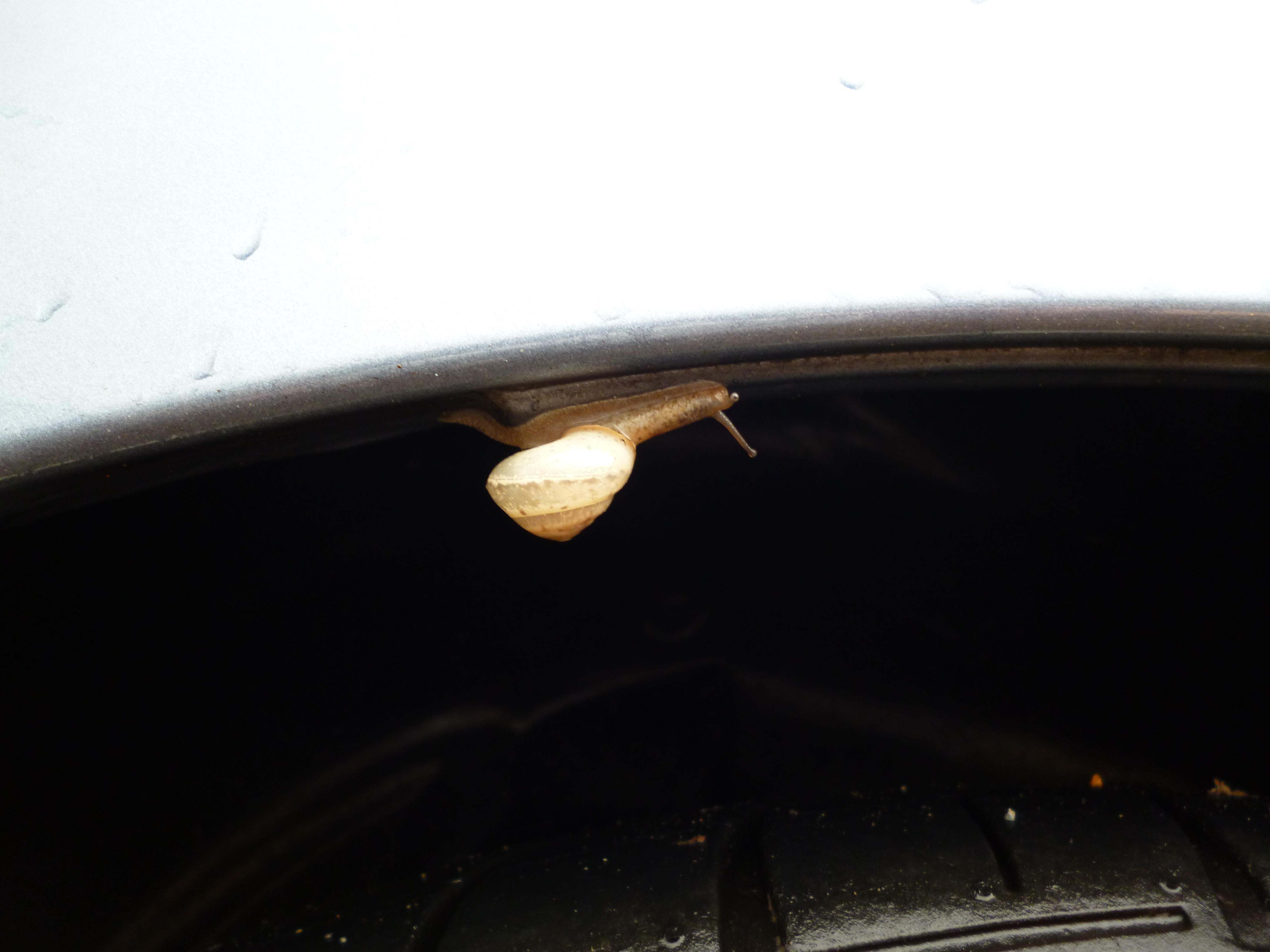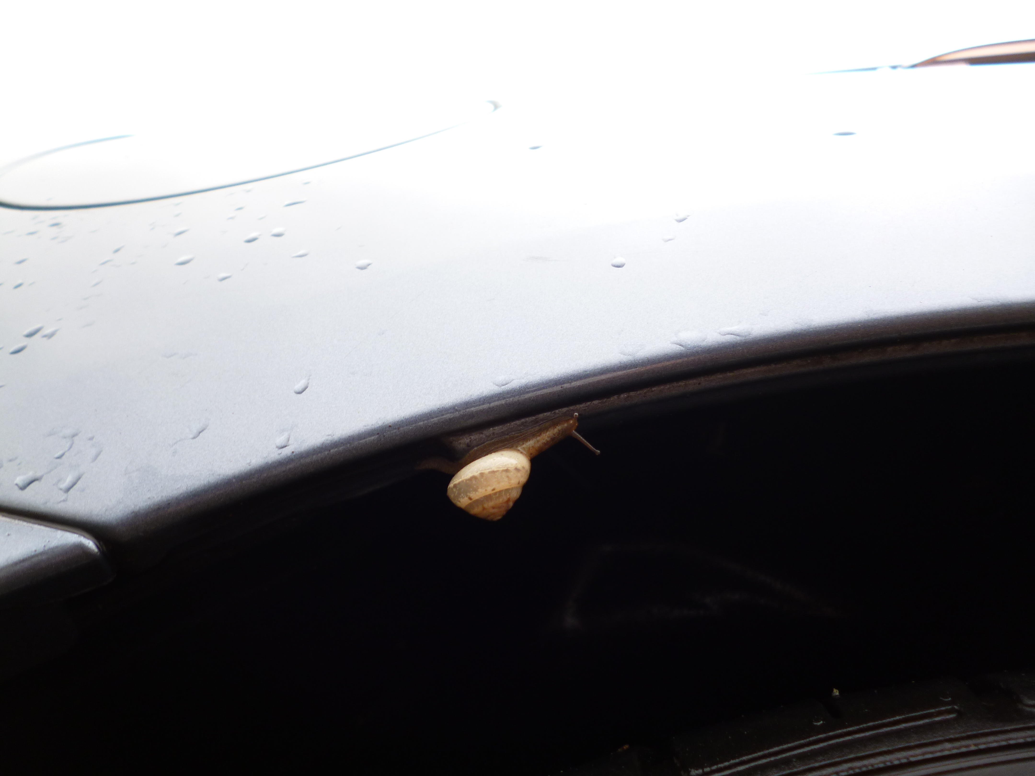 朝出社した時ふっと後輪のバンパーの上に何かが付いていました。