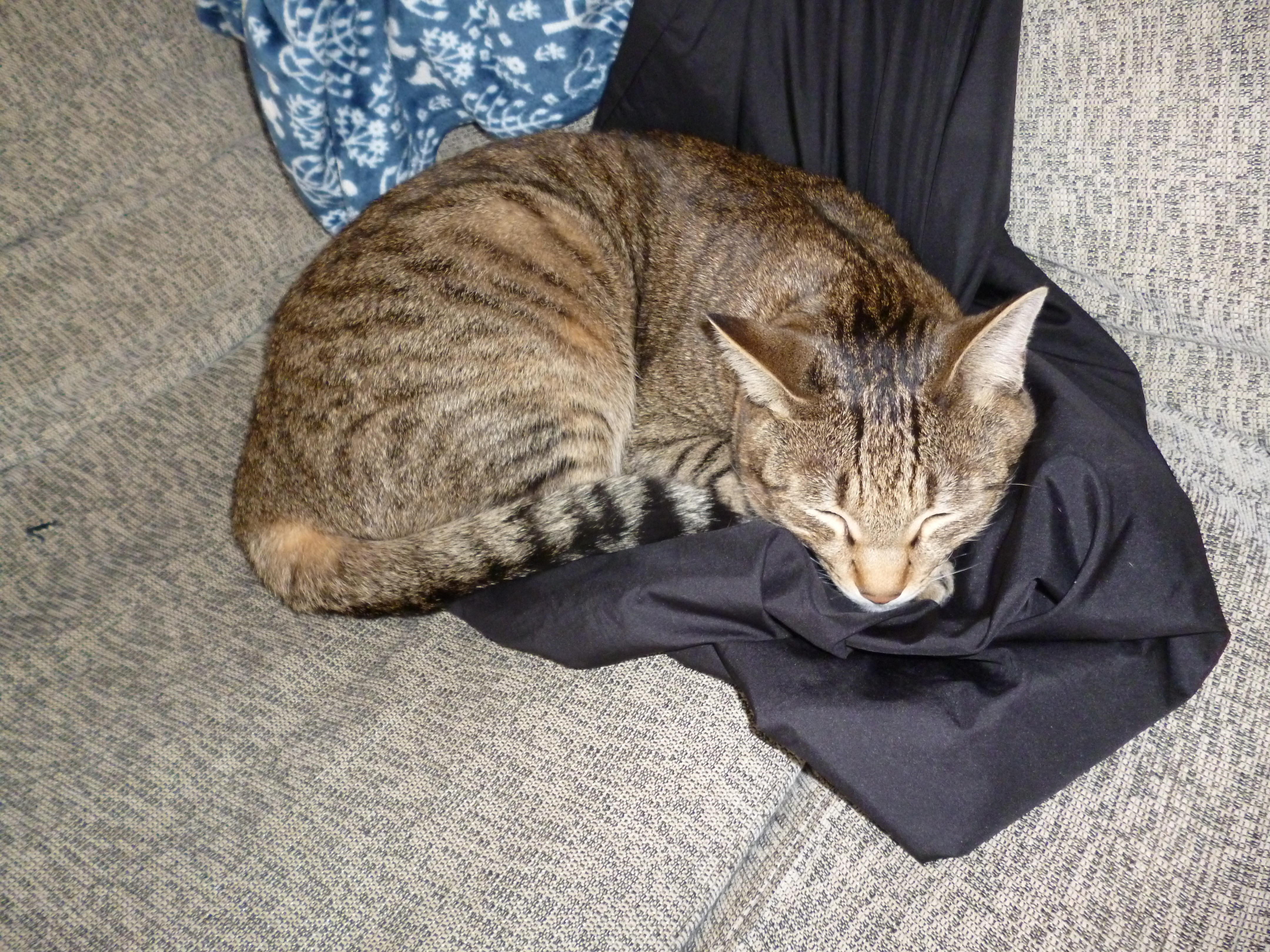 息子の脱ぎ捨てたウィンブレの上ですかさず寝ております。