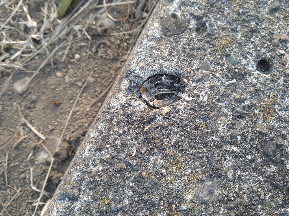 それは路肩の縁石、何故かクルミの半分が埋まっています(笑)