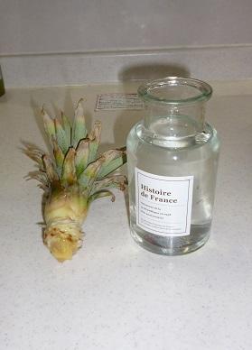 まず買ってきたパイナップルの葉の下の方を少しむいて芯を出して少し乾かします。