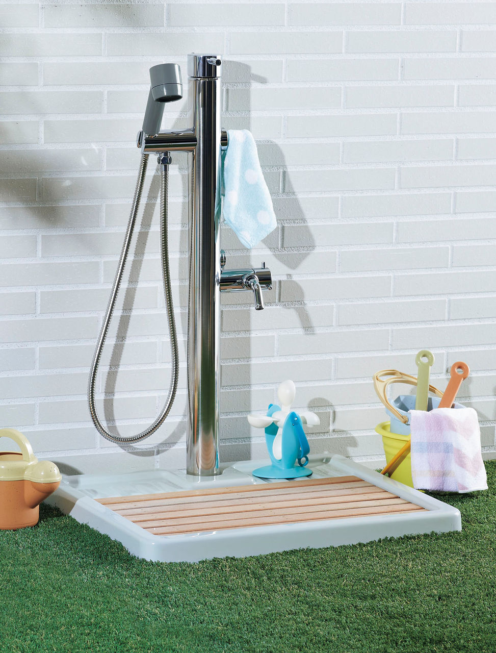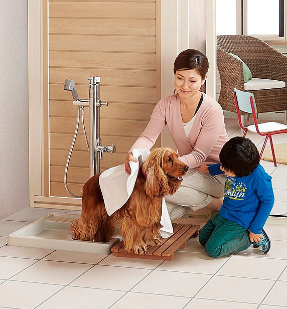 シャワーもついていて温・水の切り替えができます。 これでわんこも「冷」っとしないで済みますね。あんよもキレイキレイになって清潔です(o^―^o)