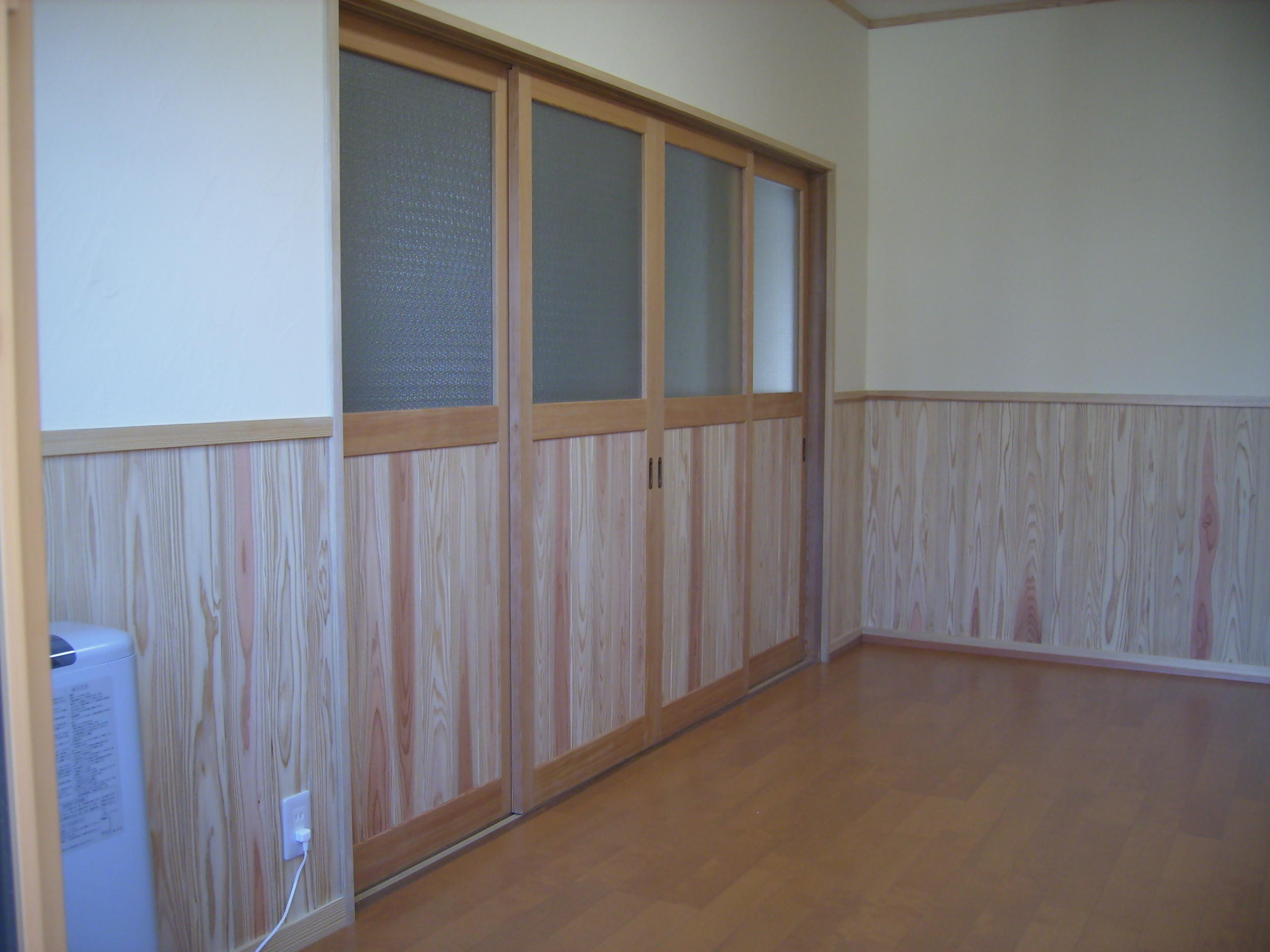 お施主様より「現在使用していない和室を今までより明るい洋室にしたい」という希望で、地袋、天袋、棚をなくし、今までより大きい断熱サッシに交換しました。