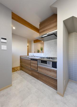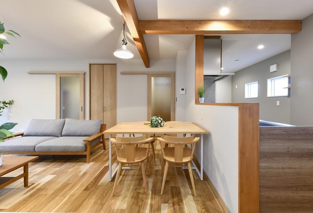 リビング・ダイニングに対面するキッチンは部屋中を見渡せて家族の顔を見ながら家事が出来ます。
