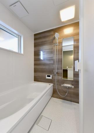 カウンターがないのでお掃除も楽々。高所窓で明るく人の姿もうつらないので安心して入浴できます。