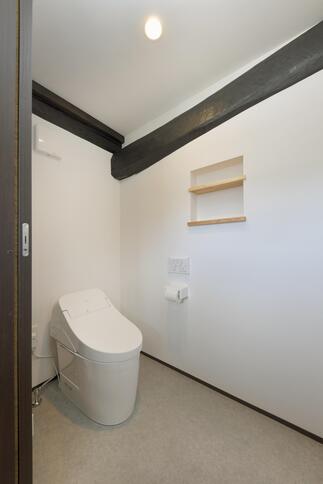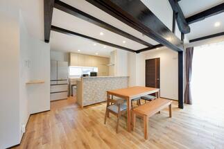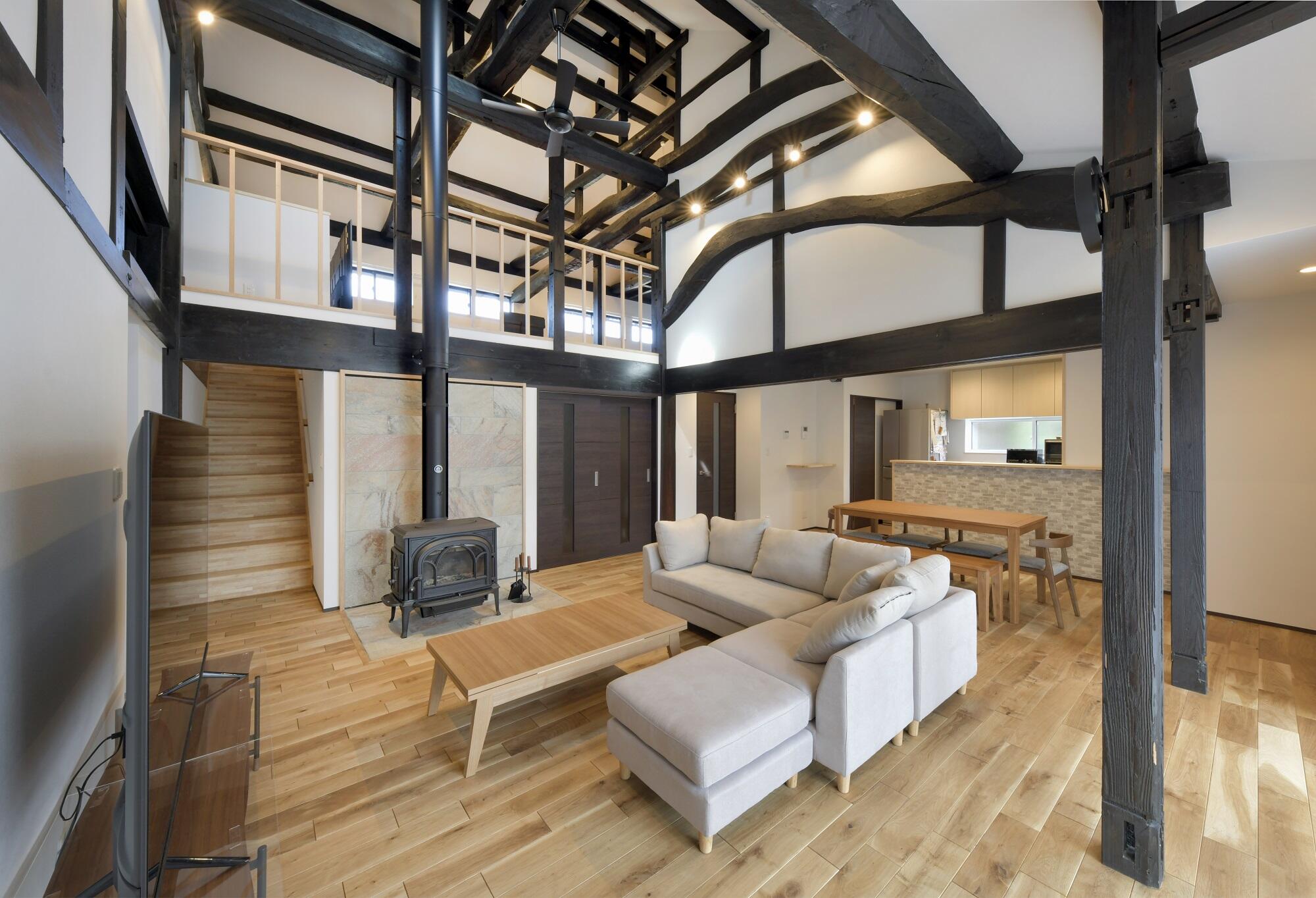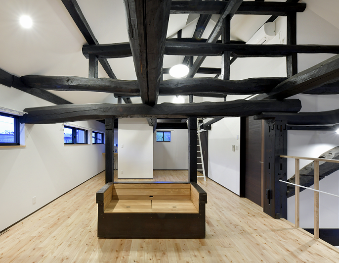 外観は文化財指定のため、既存の形・仕上げを同等にする必要があり、室内での生活に影響が出ないように平面プランを考えた。 内部は中心部に吹き抜けを設け、薪ストーブにより全体が暖まるようにした。 1階は対面式キッチンのあるLDKとして家族団欒の取りやすいプランとした。 2階は天井を取り外し古民家の特徴である重厚に組まれた太い梁を表しとして存在感を出した。